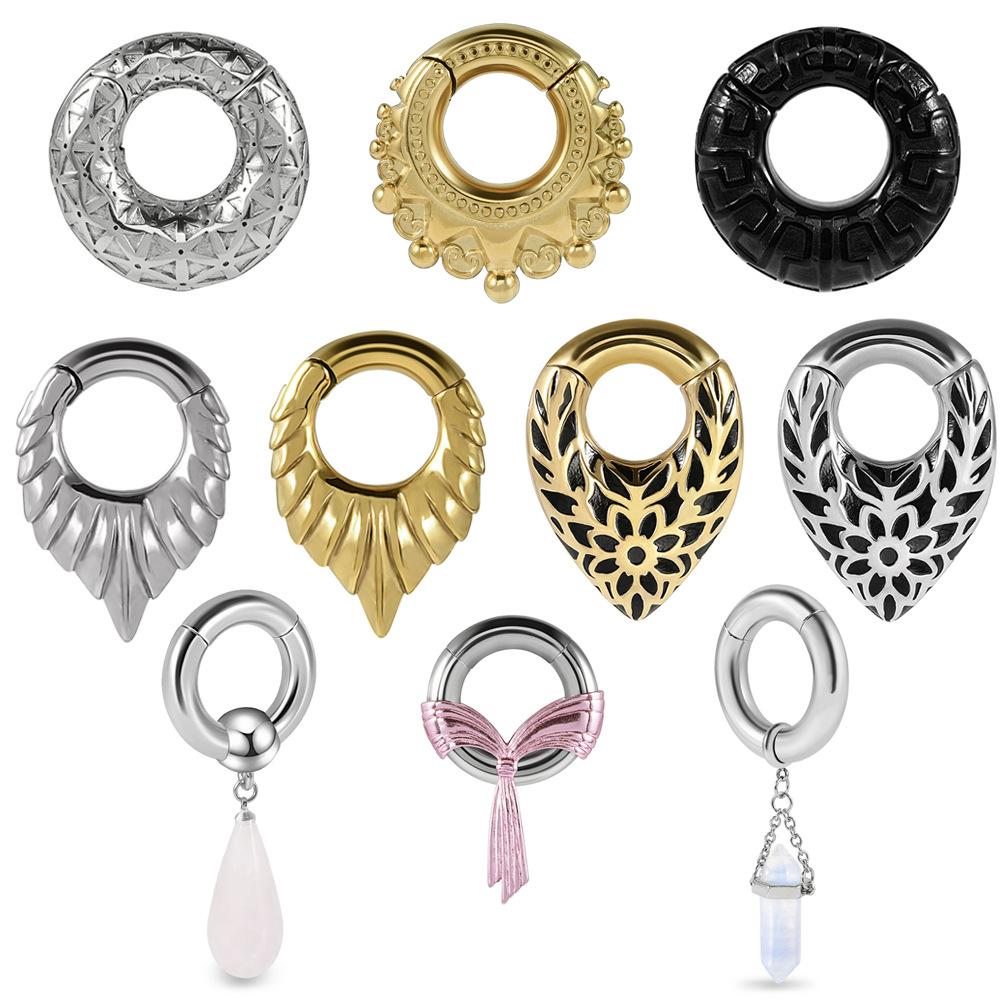 .Nome: Pingente redondo de lóbulo de orelha em forma de lágrima de aço inoxidável transfronteiriço opala brincos grandes piercing magnético moda expansão de orelha