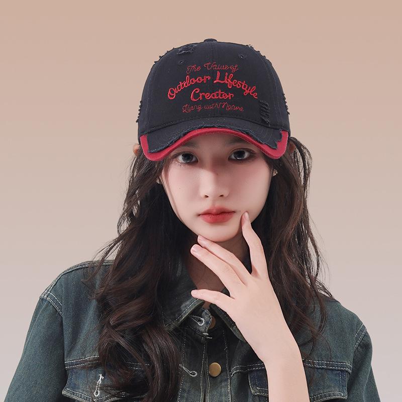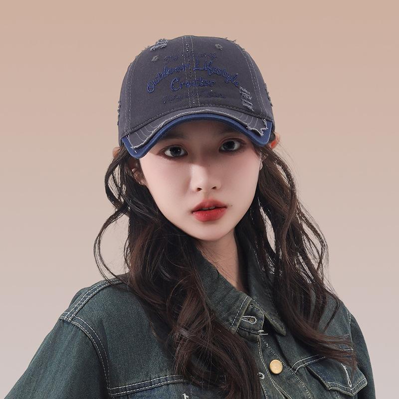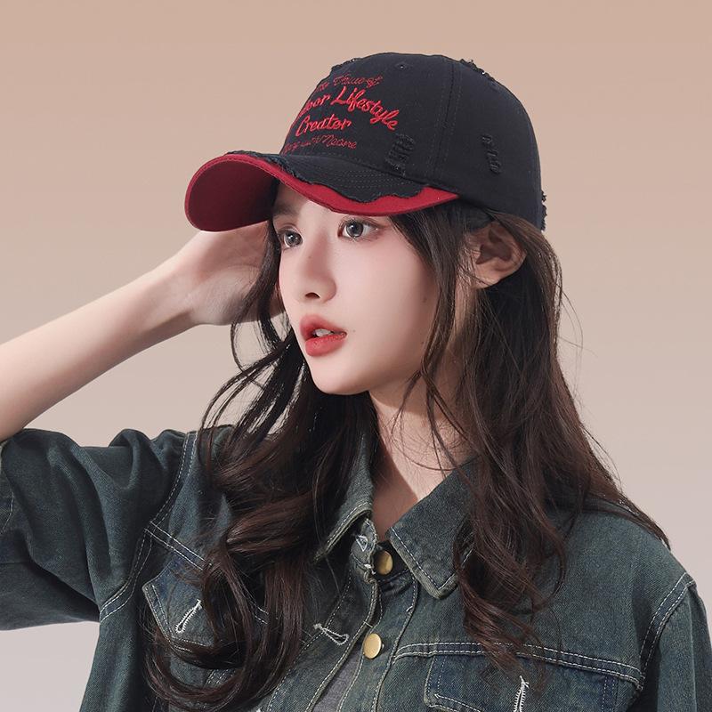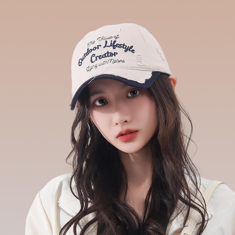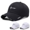 Boné de Beisebol de Topo Macio com Furo de Novo Estilo para Homens e Mulheres Lazer ao Ar Livre Primavera e Verão Quebra-Sol Estilo Coreano Moda Letra Bordada Boné com Aba