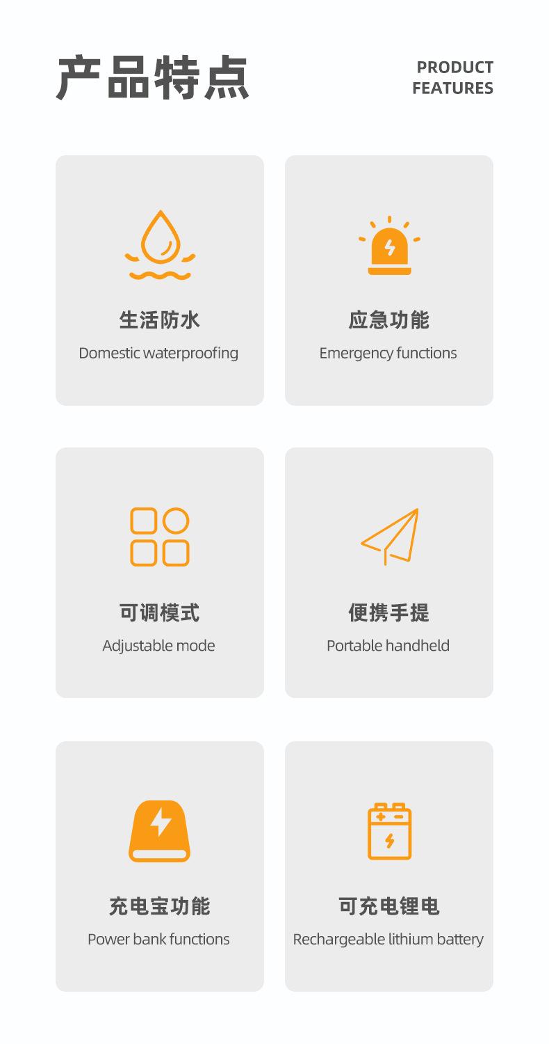 - Por favor, não atire nos olhos com a luz de emergência para evitar danos aos olhos. As crianças devem usá-la corretamente sob a orientação de adultos.