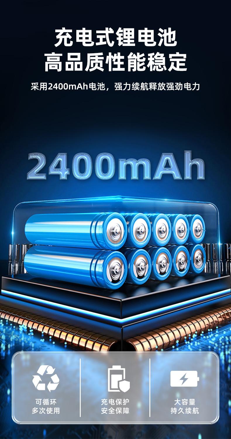 - A luz de emergência possui uma bateria de lítio recarregável de longa duração e livre de manutenção, com capacidade de 2400mAh