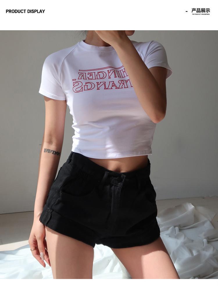 Compre Camiseta de Manga Curta Estilo Hong Kong para Mulheres Verão 2025 Estilo Coreano Tendência Celebridade da Internet Estudante Curta Cintura Alta Barriga de Fora Top Justo no atacado no Joom.pro