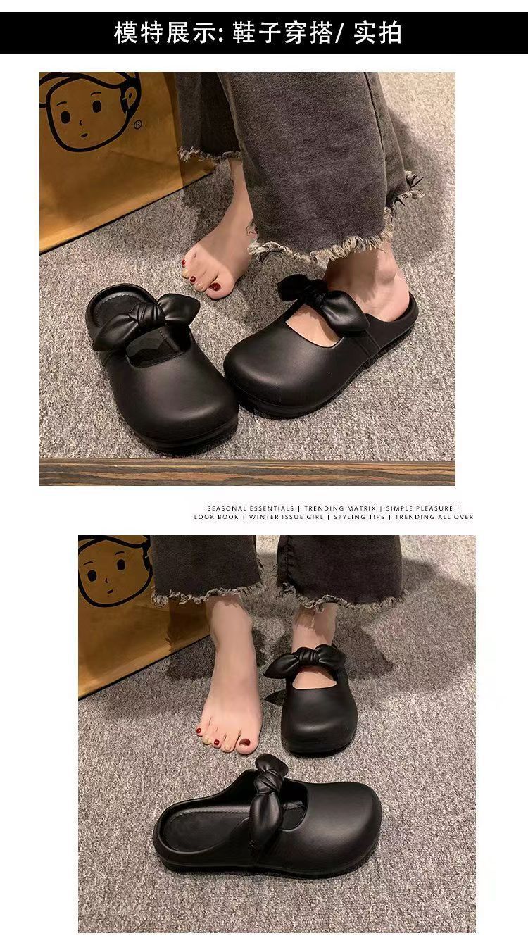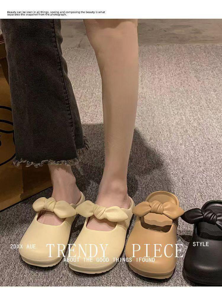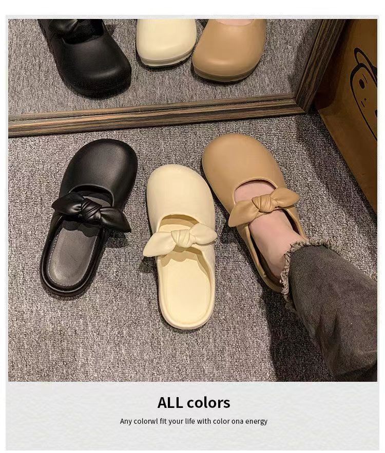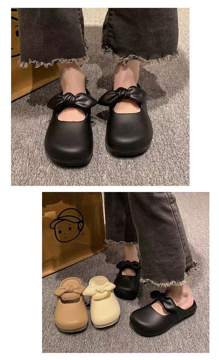 1601 bow slippers-white, 1601 bow slippers-dark coffee, 1601 bow slippers-light coffee, 1601 bow slippers-black