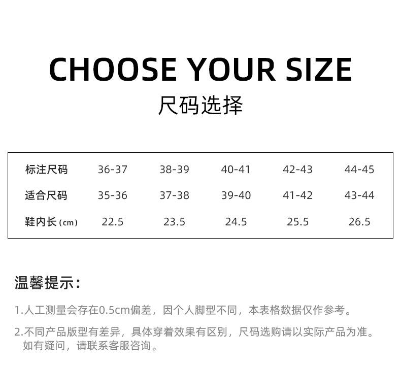 36-37 (1-2 sizes too small), 38-39 (1-2 sizes too small), 40-41 (1-2 sizes too small), 42-43 (1-2 sizes too sm...