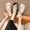 Sandálias romanas femininas verão outerwear 2024 novas sandálias rasteiras e chinelos fivela de cinto all-match seaside beach shoes para mulheres