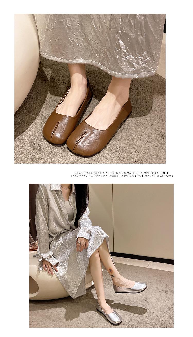 Sapatos de couro macio com sola macia, sola plana feminina, 2025, novo estilo coreano, todos os estilos, sapatos casuais e preguiçosos