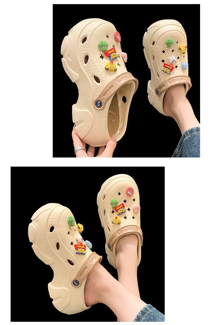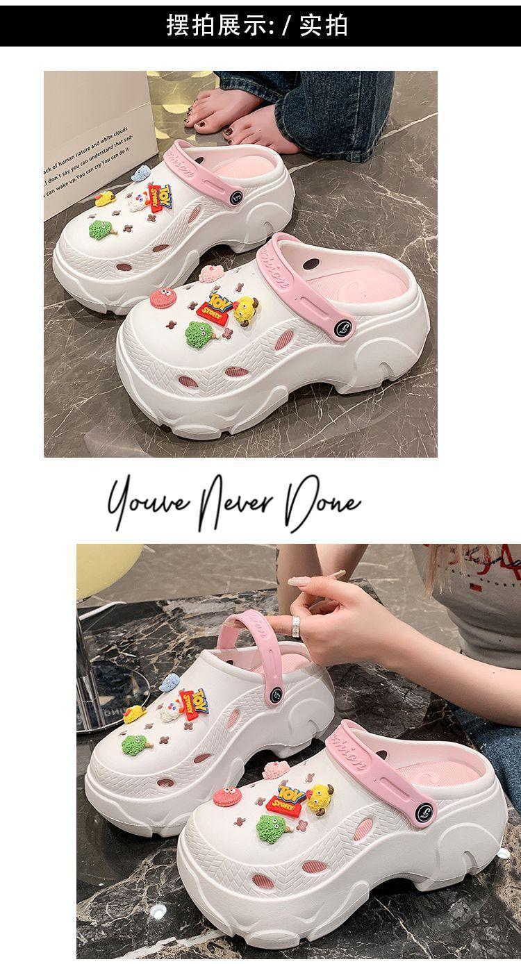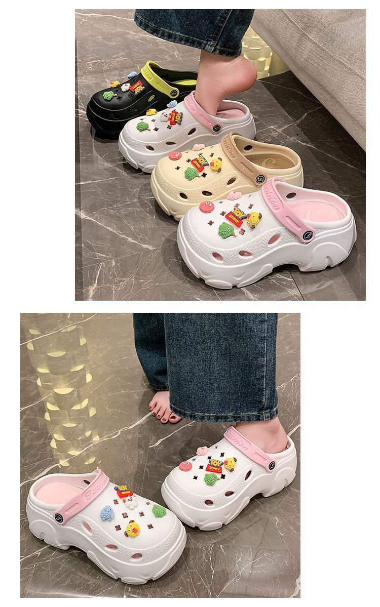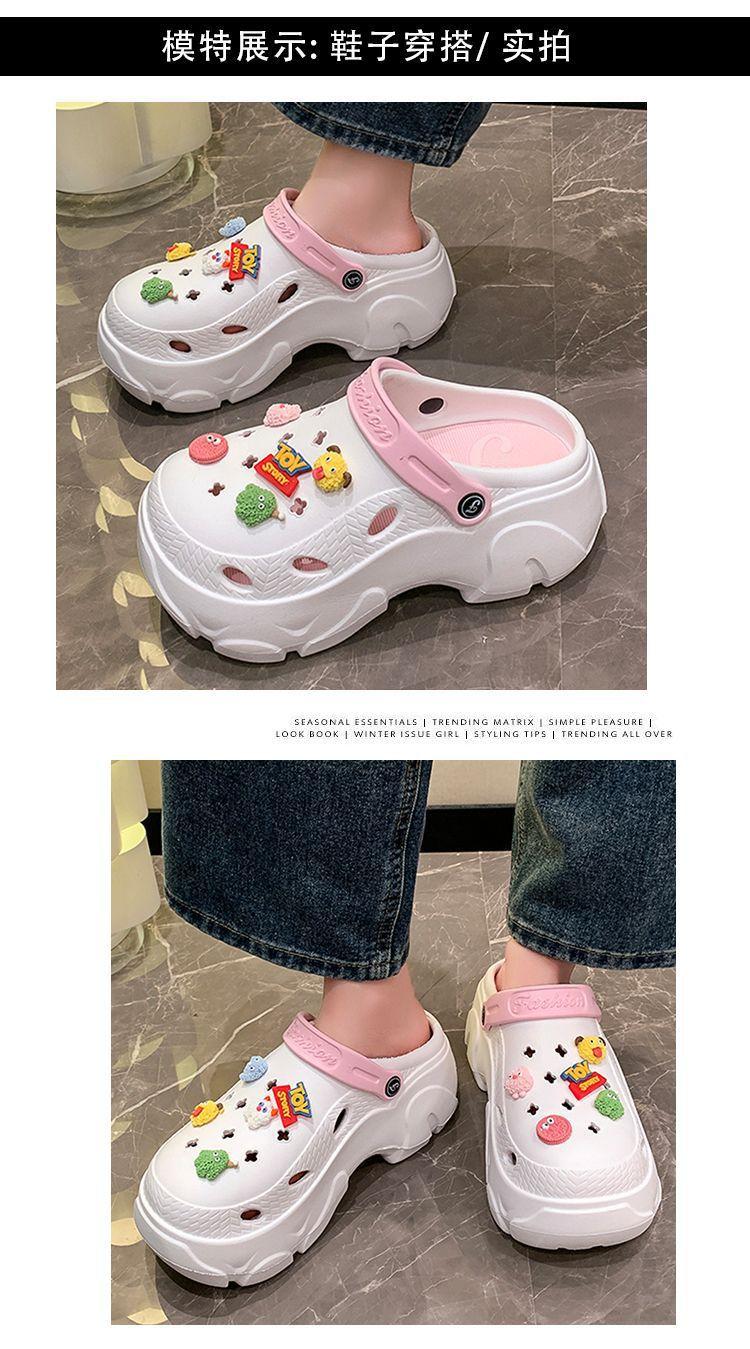 Sapatos de buraco femininos verão sola grossa desgaste exterior 2025 nova praia internet celebridade slip-on sentimento antiderrapante sandálias baotou mulheres