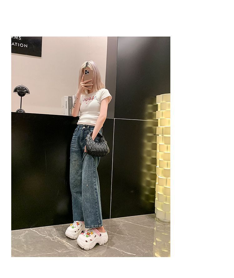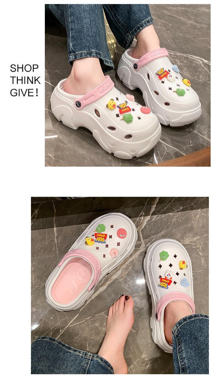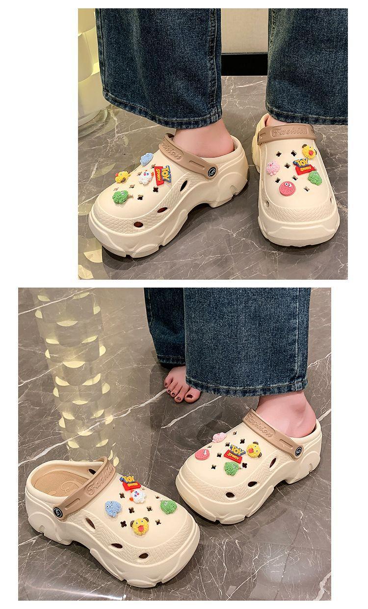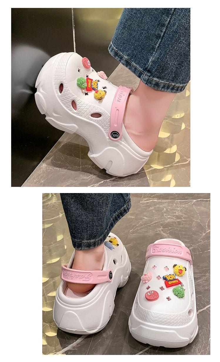 Sapatos de buraco femininos verão sola grossa desgaste exterior 2025 nova praia internet celebridade slip-on sentimento antiderrapante sandálias baotou mulheres
