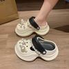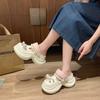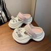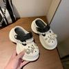 Sapatos de sola grossa com buracos para mulheres, roupa externa 2025, novos sapatos de praia antiderrapantes com strass e pérolas, sandálias elevadas para o verão feminino