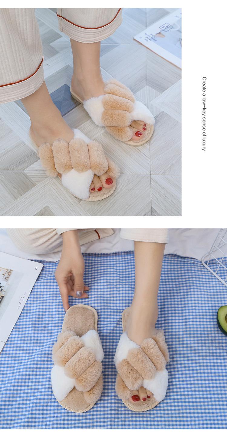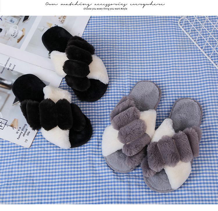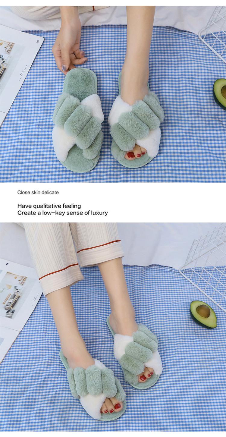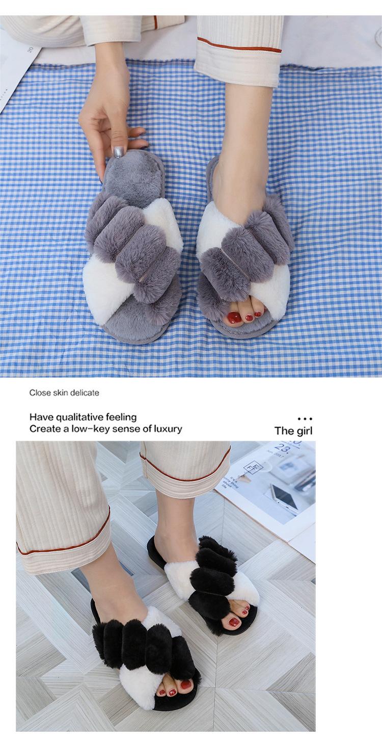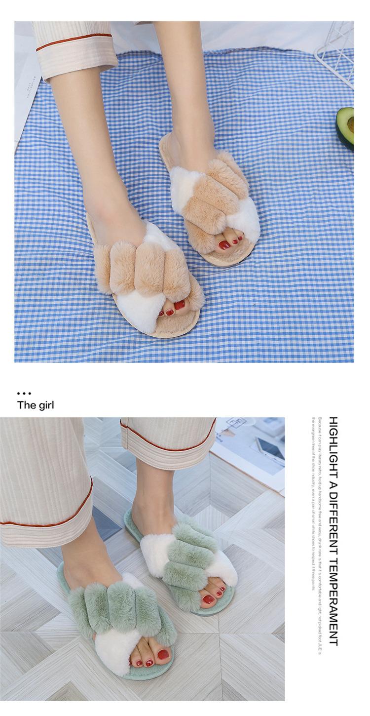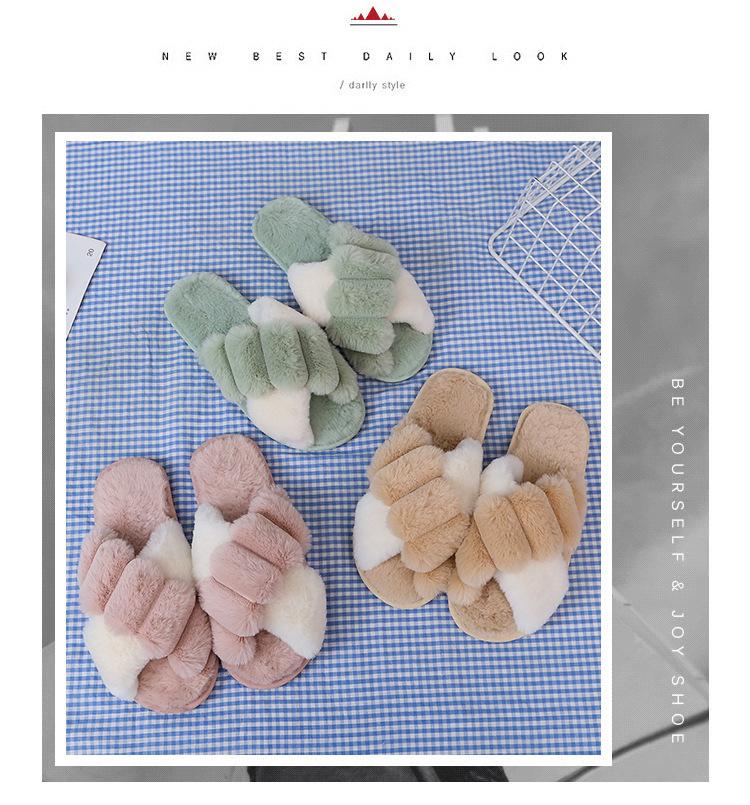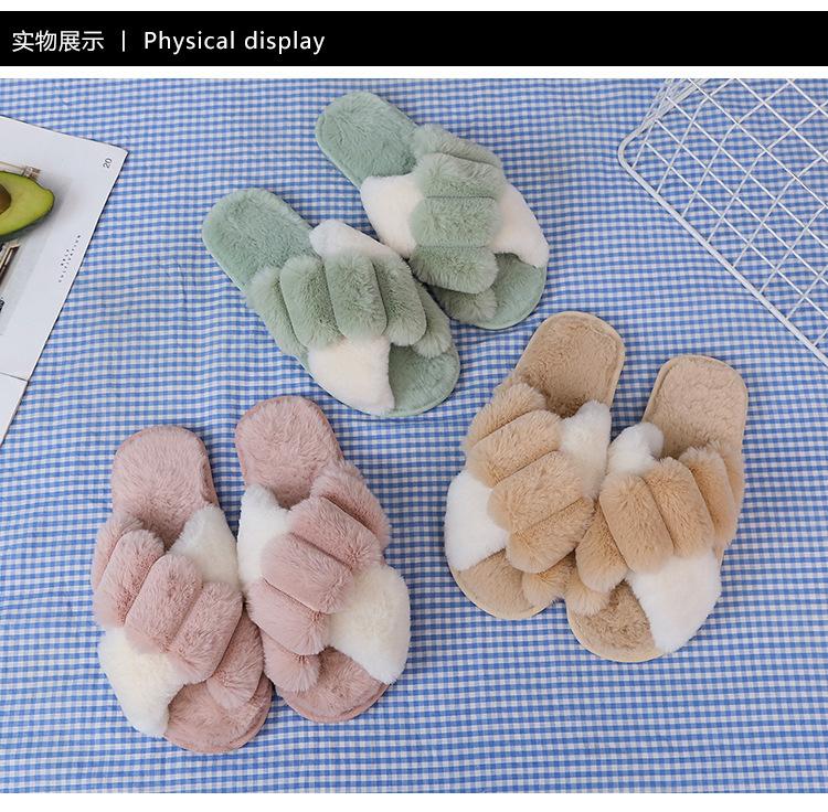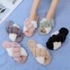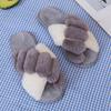 Mao Mao chinelos femininos 2024 outono e inverno novo estilo coreano cruz dedo do pé aberto moda plana interior casa chinelos de algodão feminino