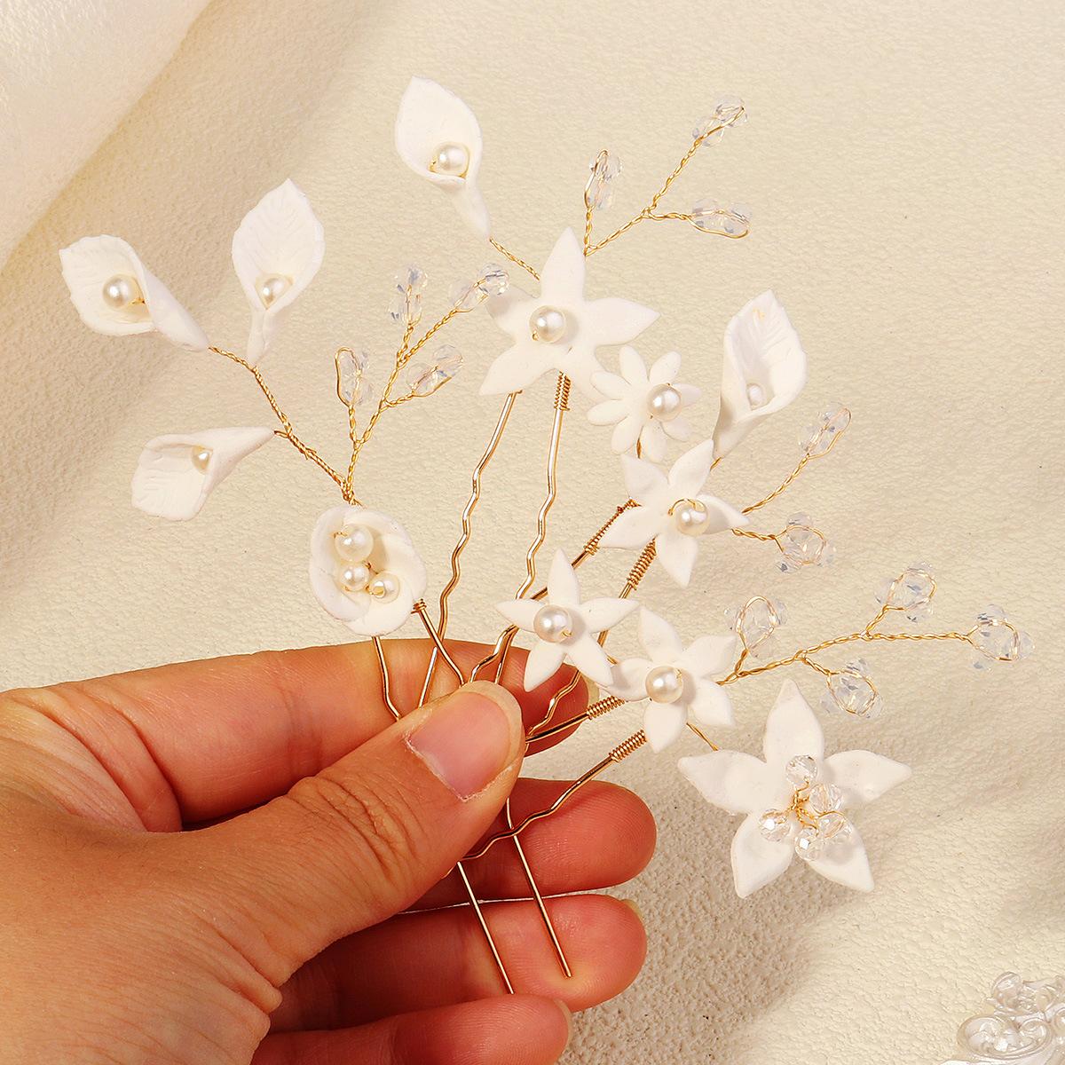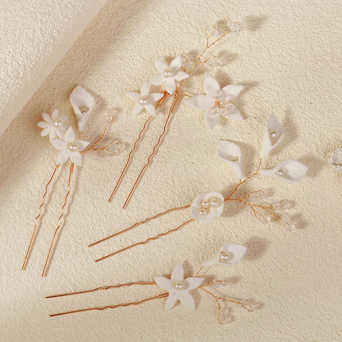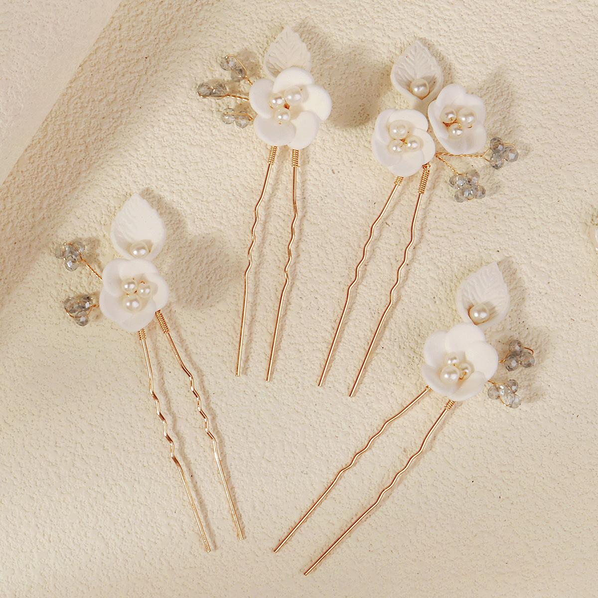 Compre Novo cocar de noiva transfronteiriço feito à mão com flores e folhas, grampo de cabelo, terno de comércio exterior, cabelo de casamento requintado, pino em forma de U no atacado no Joom.pro