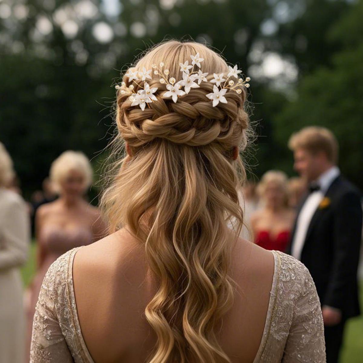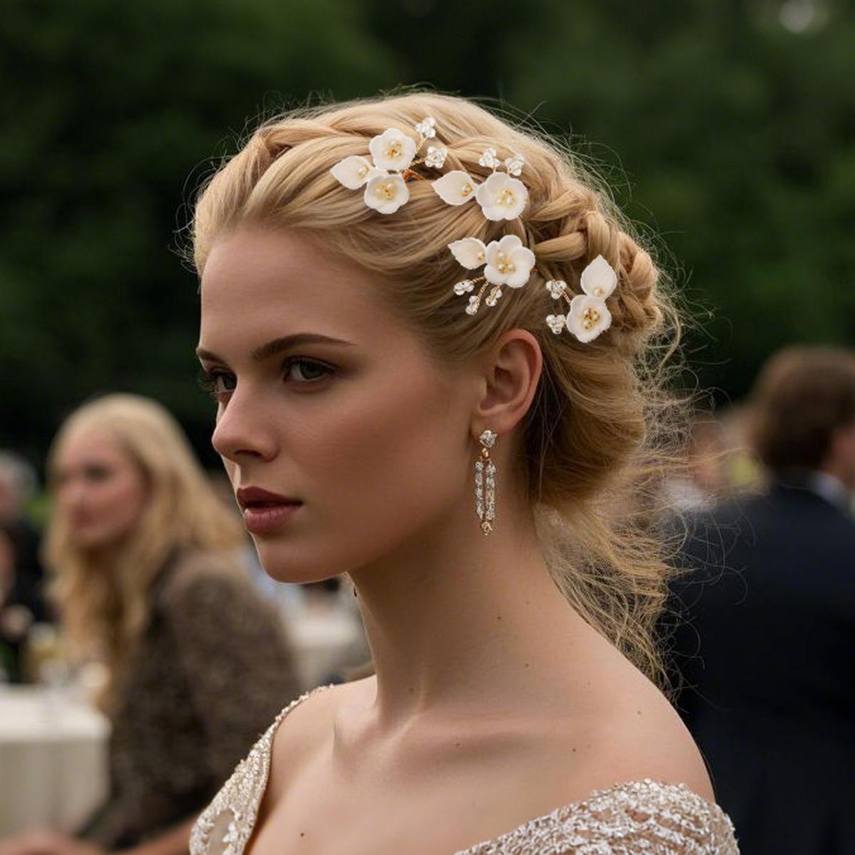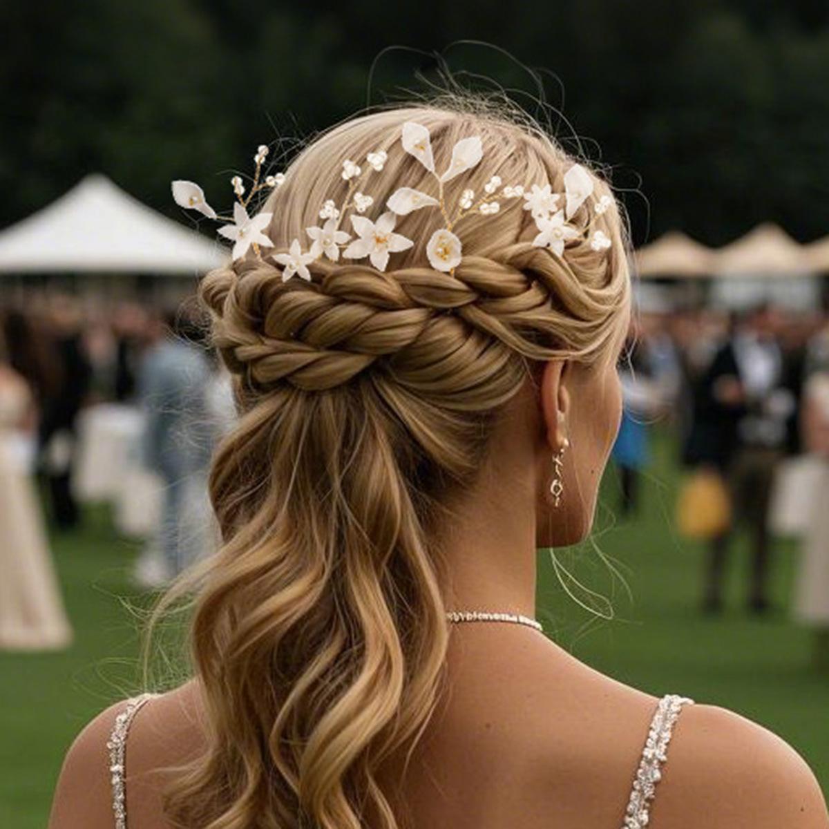 Compre Novo cocar de noiva transfronteiriço feito à mão com flores e folhas, grampo de cabelo, terno de comércio exterior, cabelo de casamento requintado, pino em forma de U no atacado no Joom.pro
