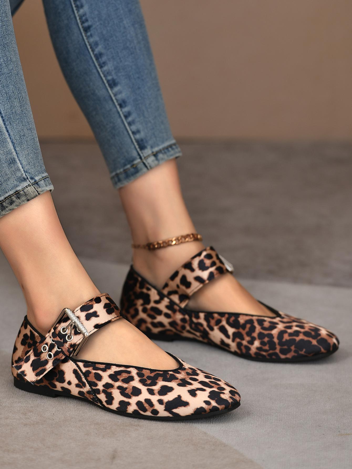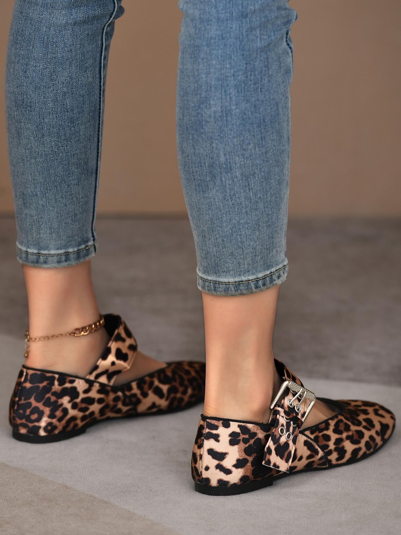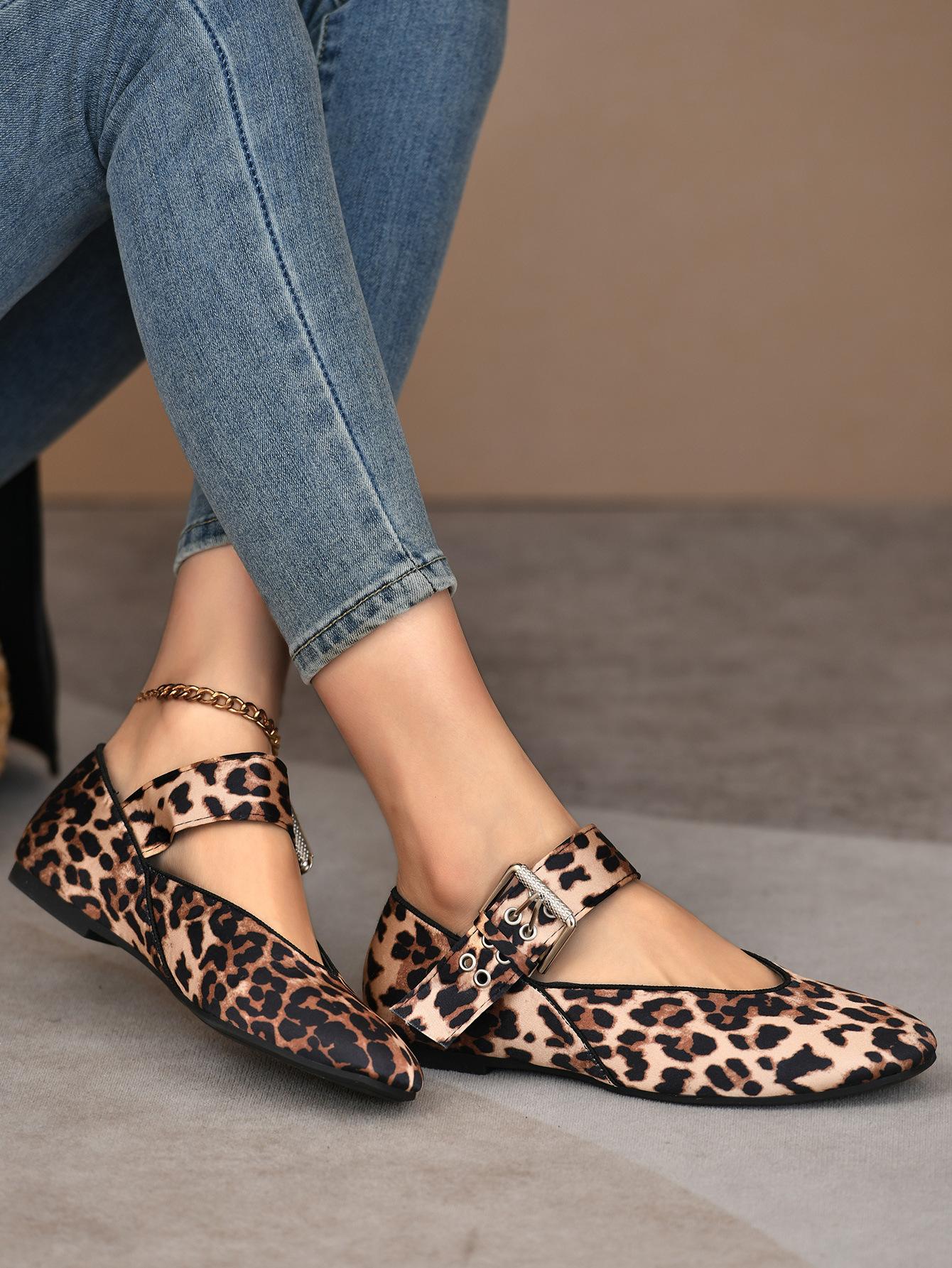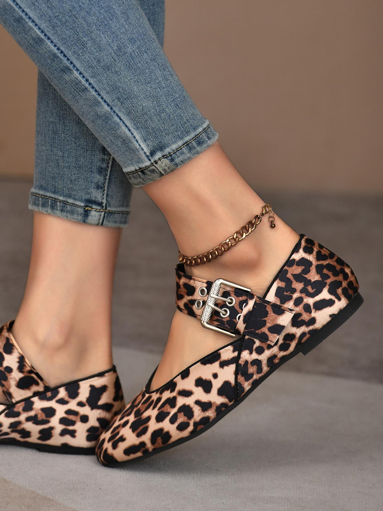 Novos Scarpins Transfronteiriços, Sapatos Femininos com Fivela de Uma Linha, Sapatos Rasteiros da Moda, Sapatos Rasteiros da Moda Europeia e Americana com Estampa de Leopardo