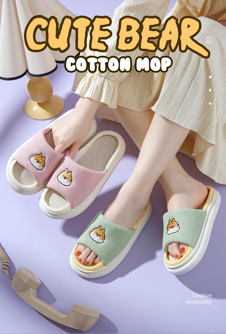 Chinelos de linho Chinelos de Casal dos Desenhos Animados Bonitos das Mulheres Chinelos de Piso Interno Antiderrapante Confortável Fundo Grosso Chinelos de Chão Masculino