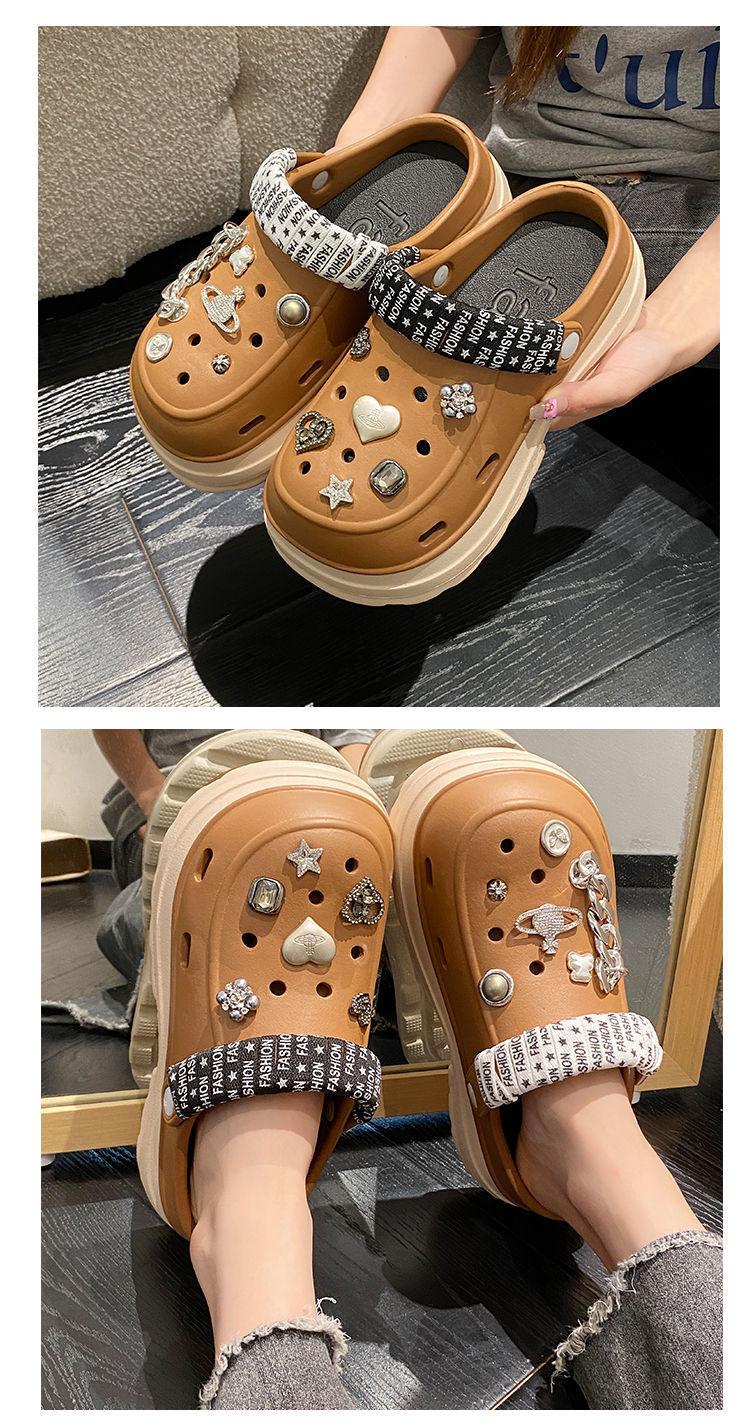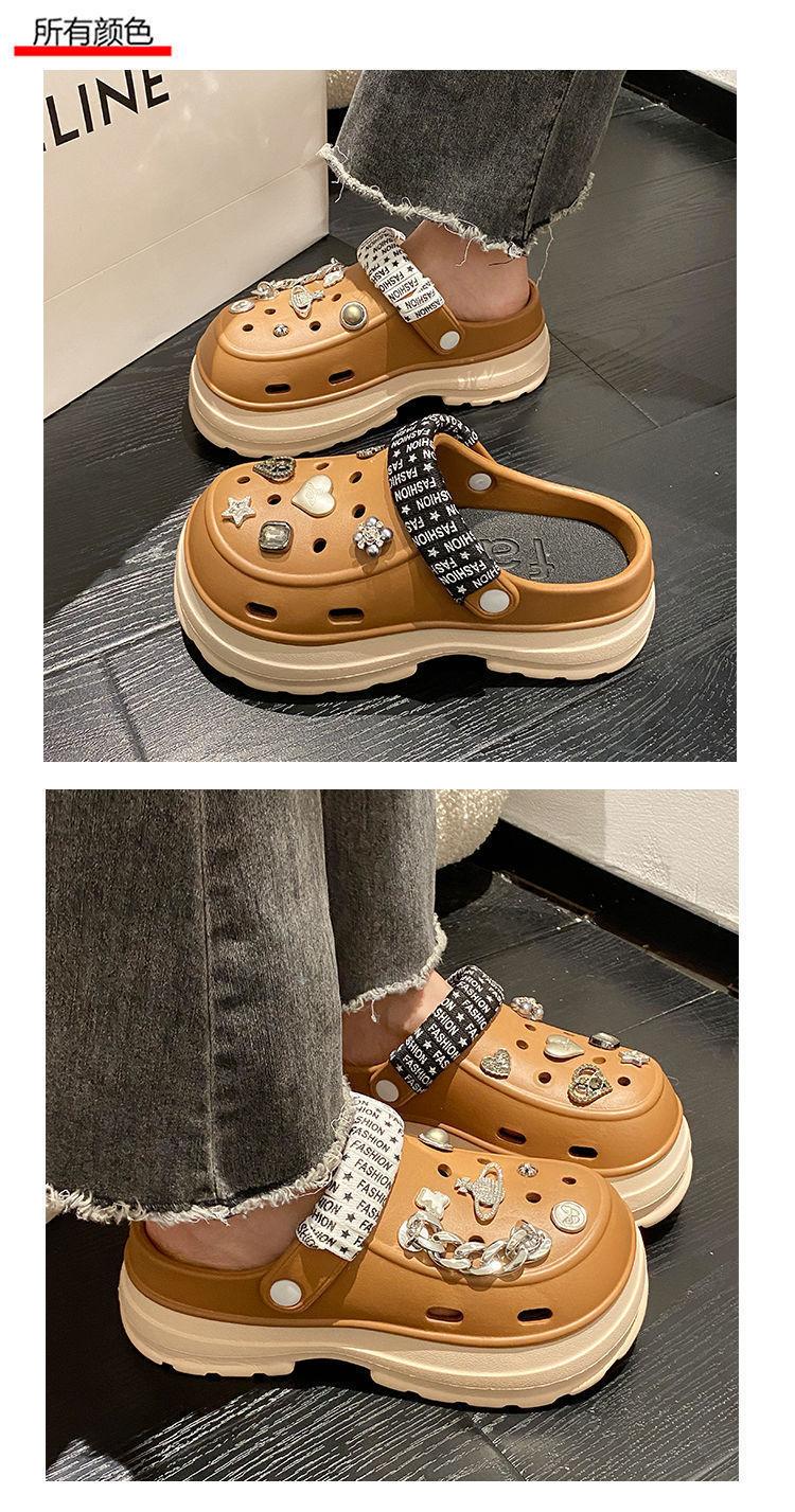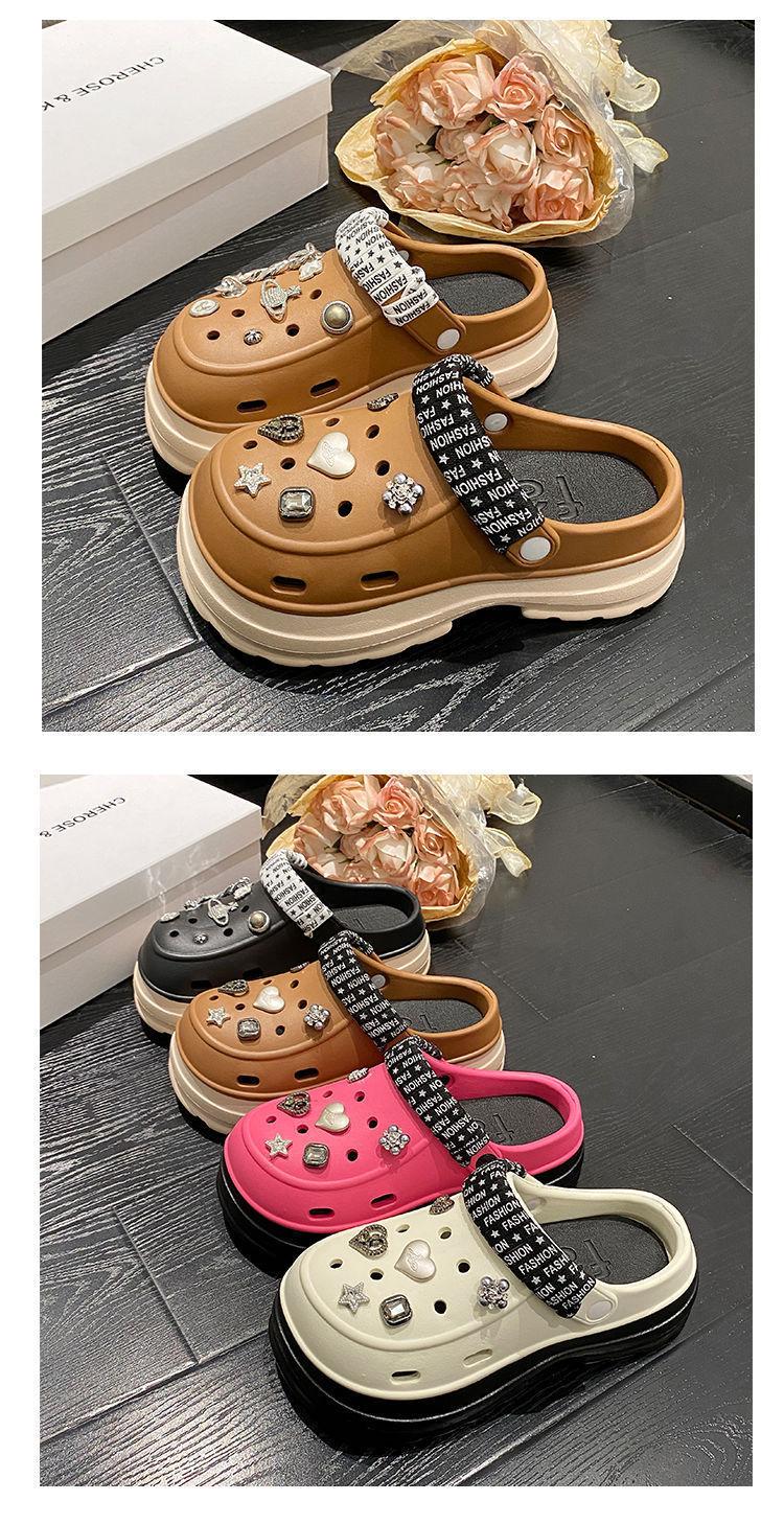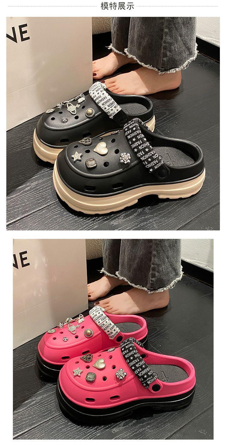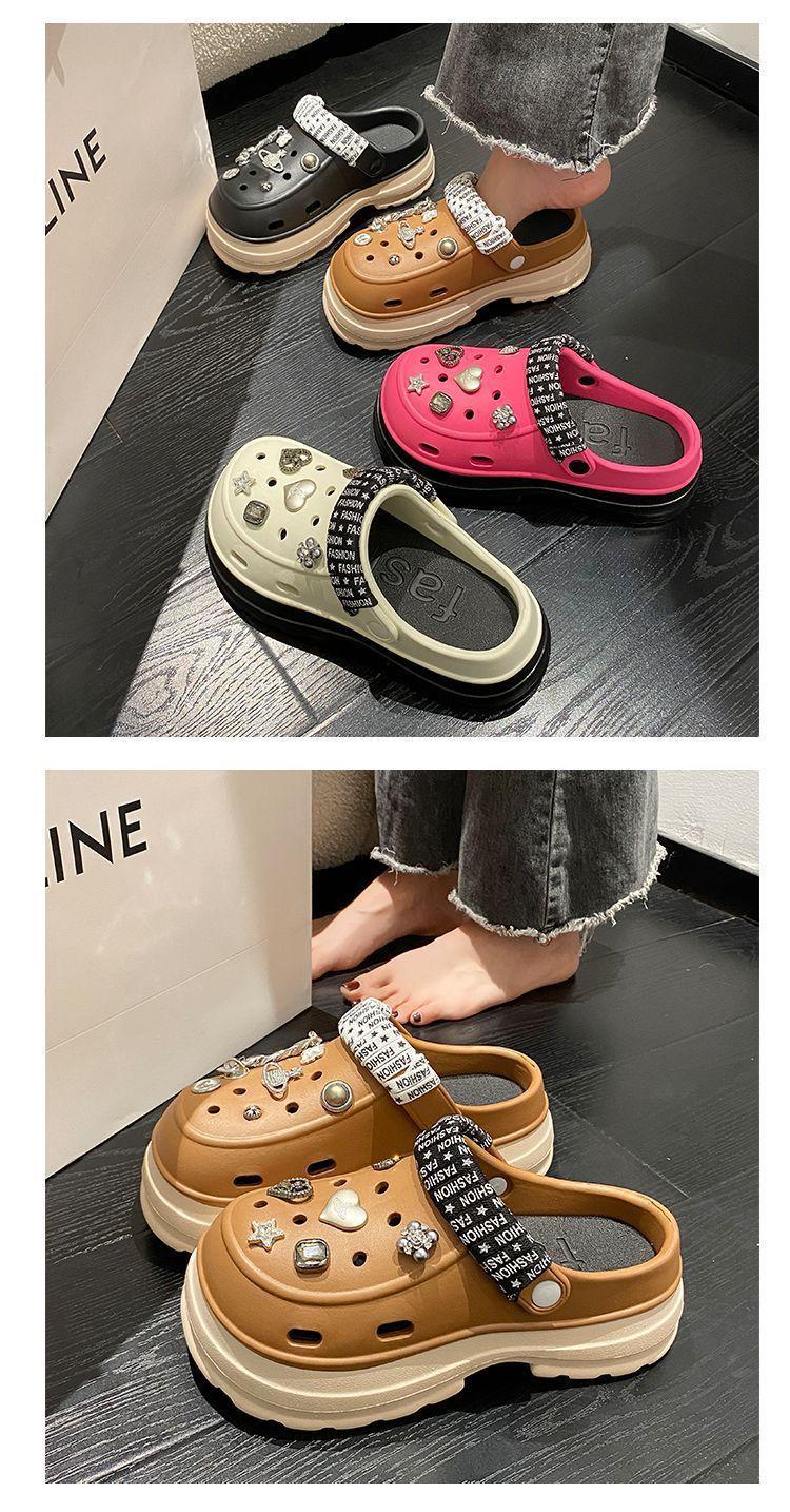 Compre Sapatos femininos de sola grossa com furo Verão Outer Wear 2024 Novo estilo de sandálias de praia com sola de plataforma Chinelos Baotou femininos no atacado no Joom.pro