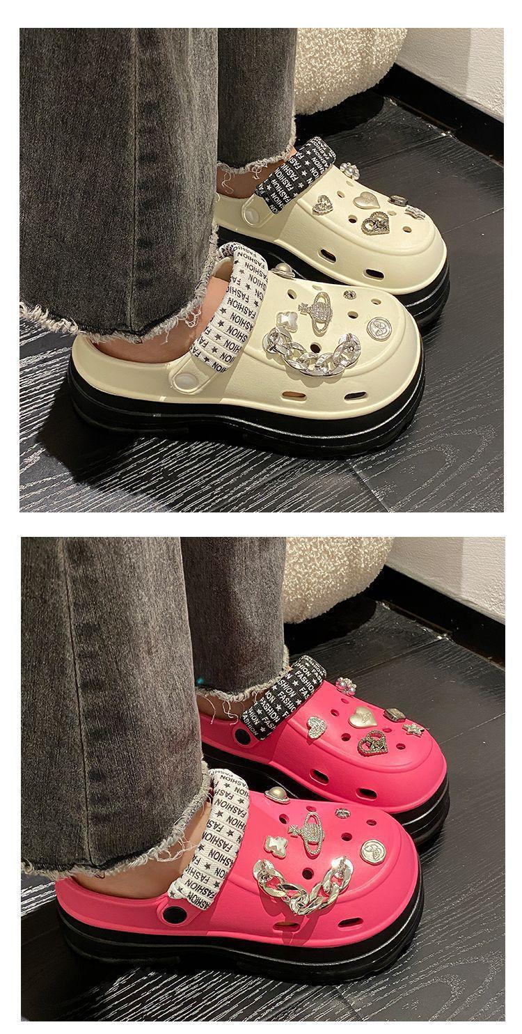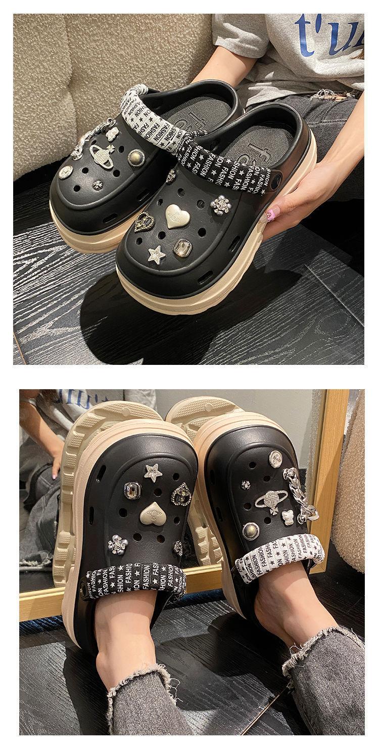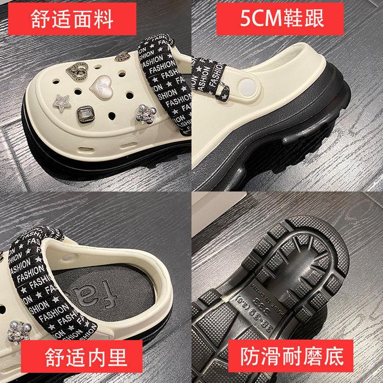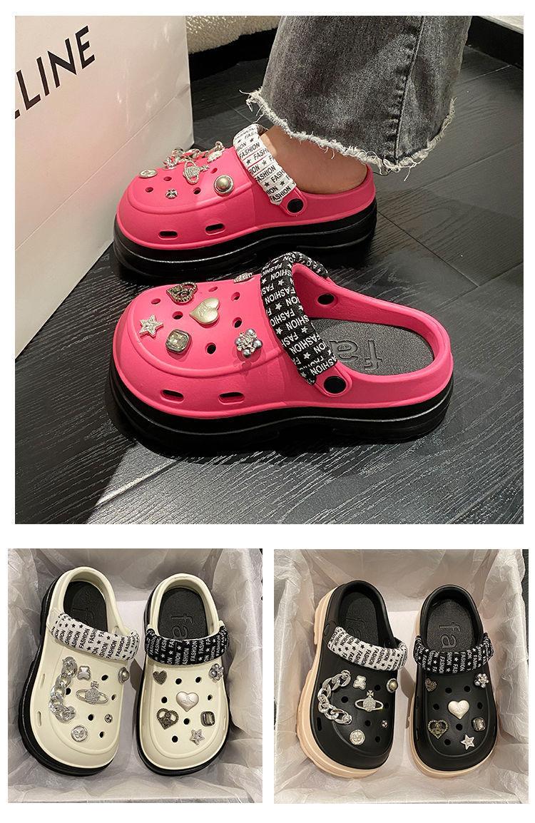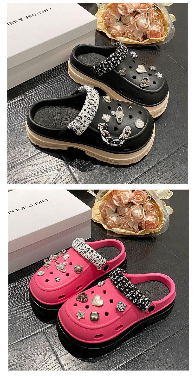 Compre Sapatos femininos de sola grossa com furo Verão Outer Wear 2024 Novo estilo de sandálias de praia com sola de plataforma Chinelos Baotou femininos no atacado no Joom.pro