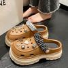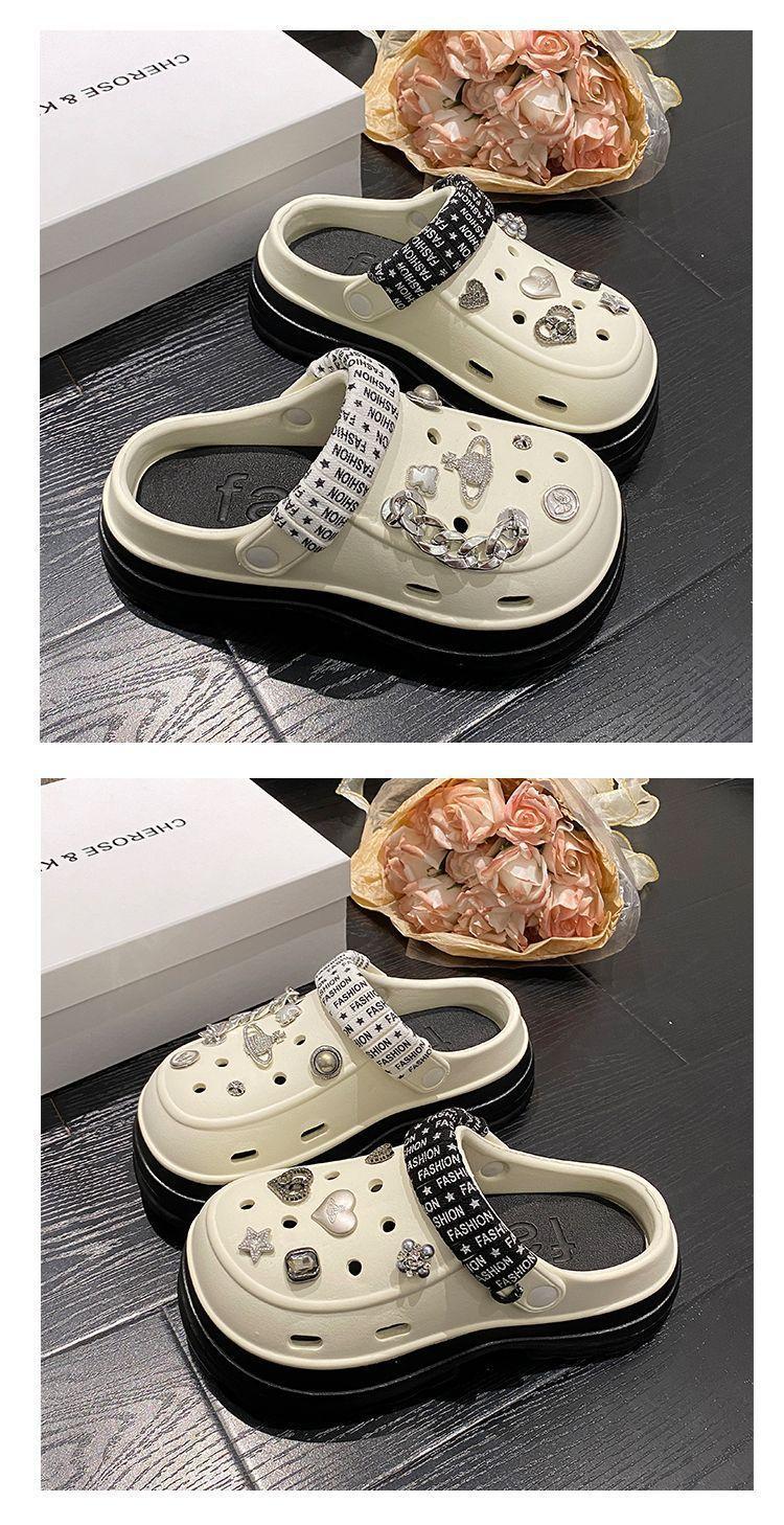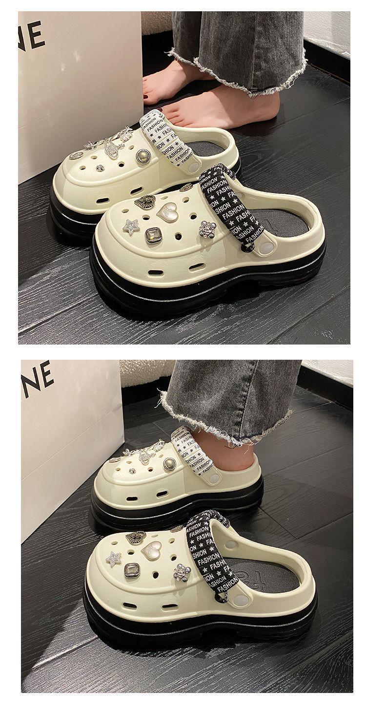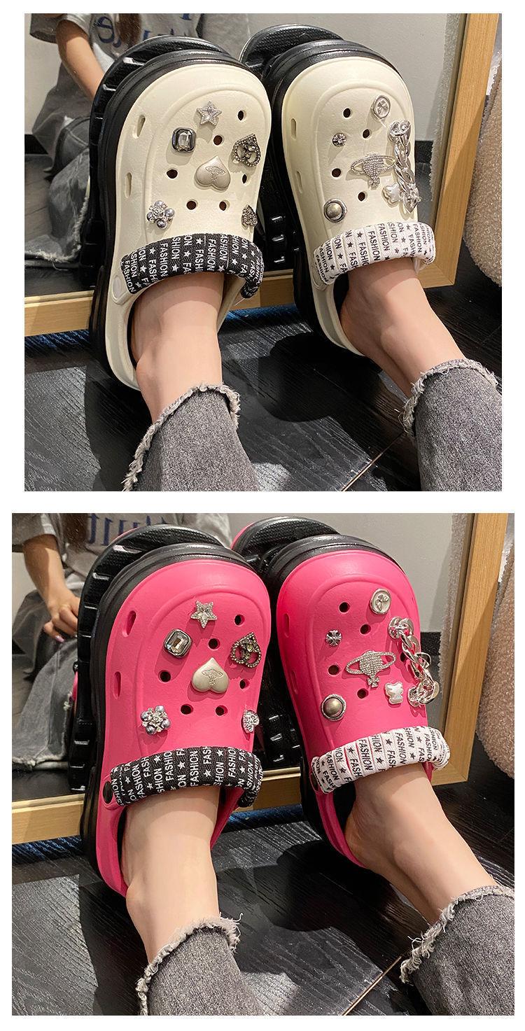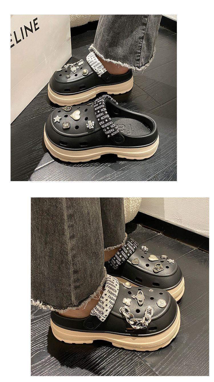 Sapatos femininos de sola grossa com furo Verão Outer Wear 2024 Novo estilo de sandálias de praia com sola de plataforma Chinelos Baotou femininos