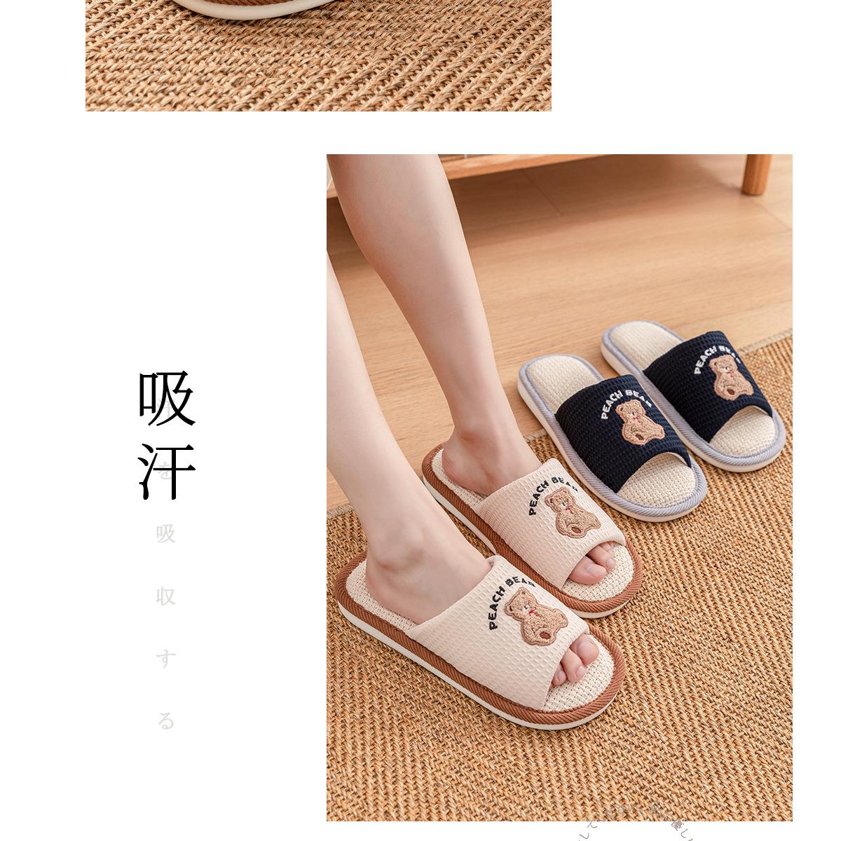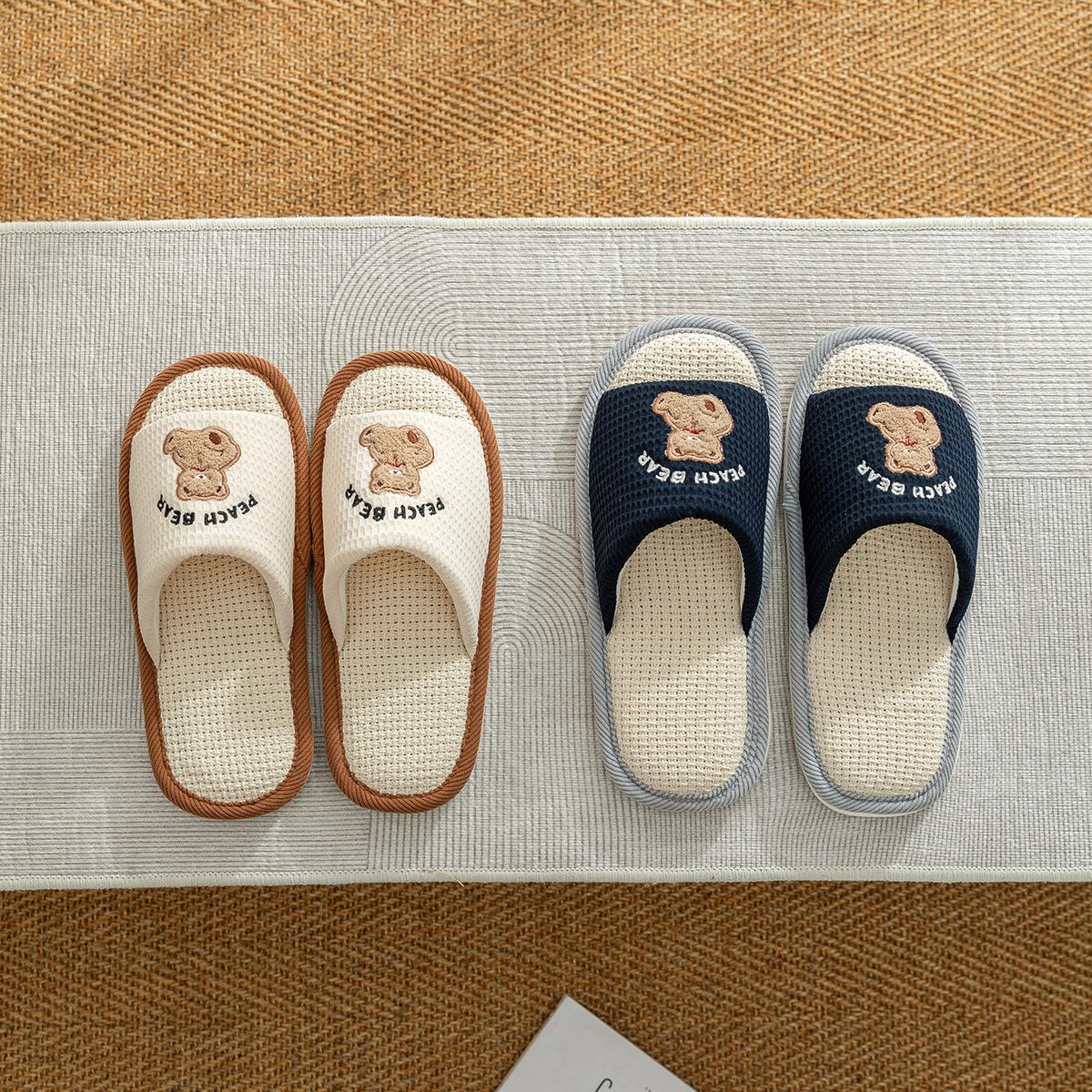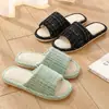 Chinelos de linho fofos femininos quatro estações para ambientes internos casa absorvente de suor silencioso dormitório estudantil chinelos de linho de algodão masculino primavera e outono