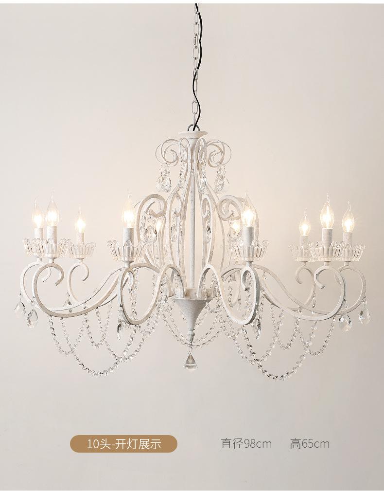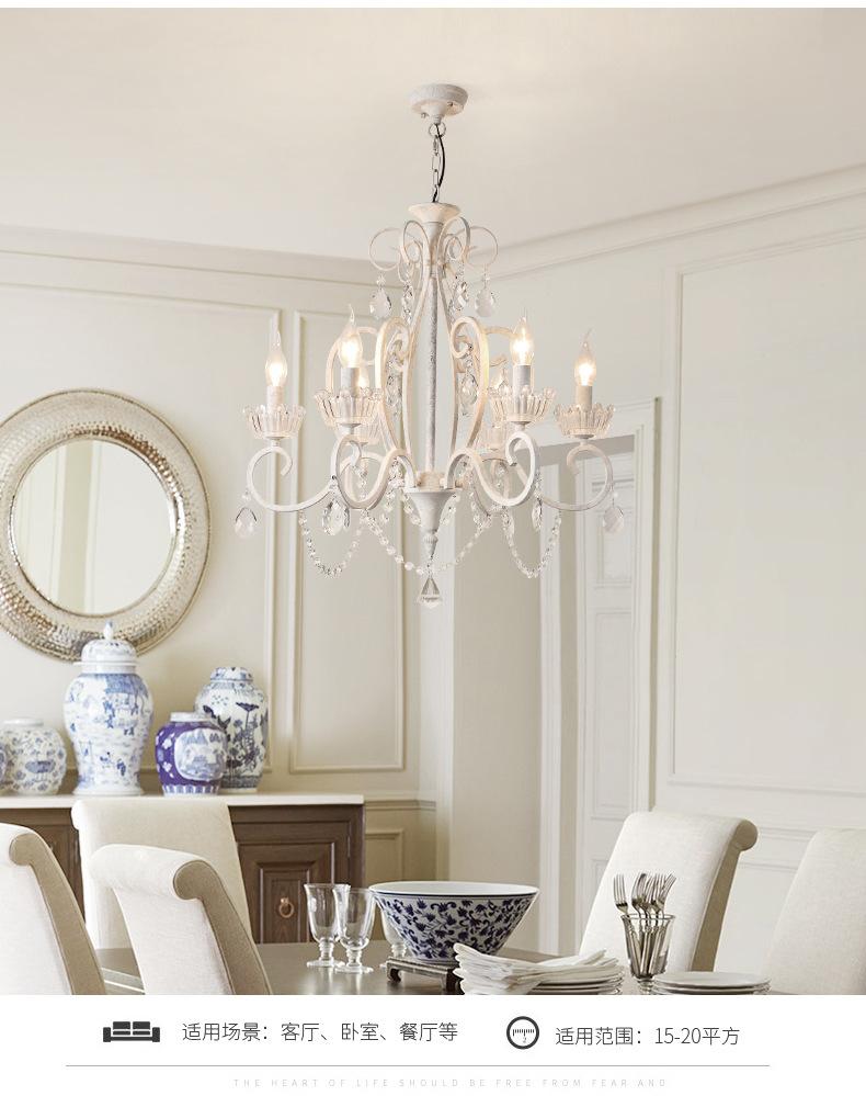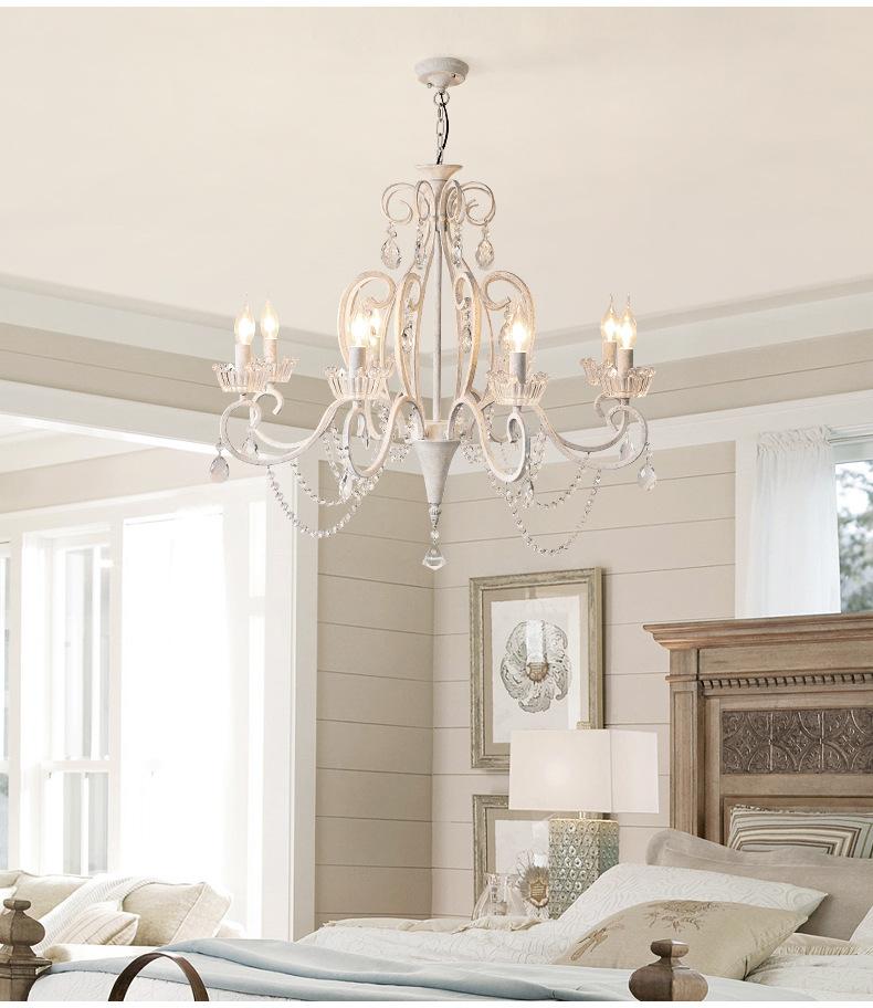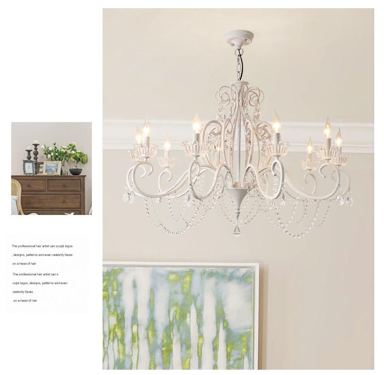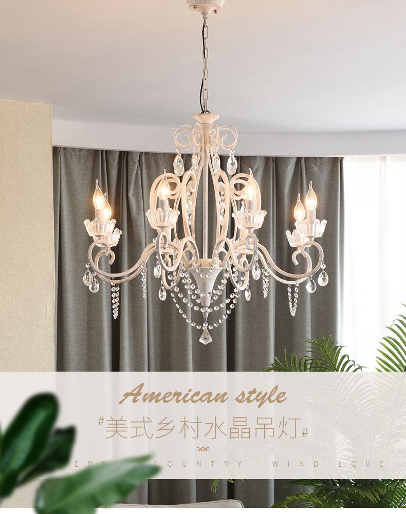 Compre Lustre branco retrô americano sala de estar lâmpada de cristal francesa quarto famoso moderno minimalista sala de jantar estudo lâmpadas criativas no atacado no Joom.pro