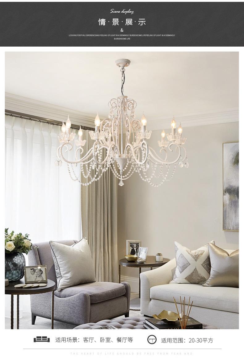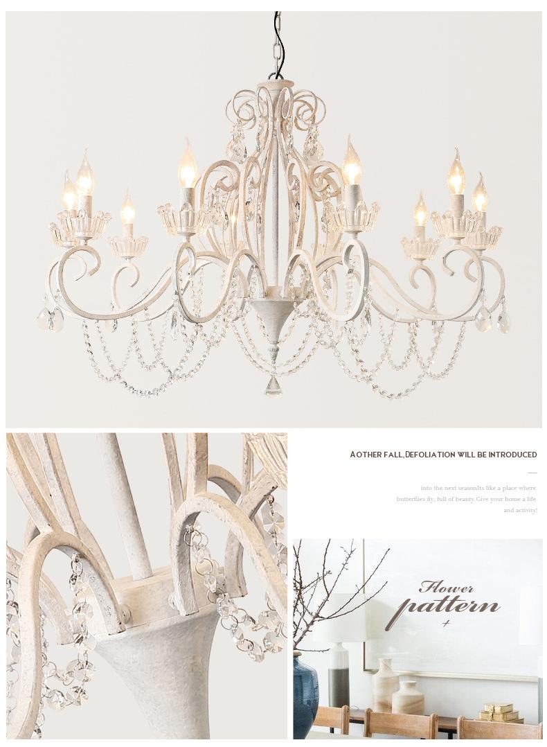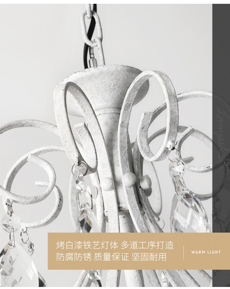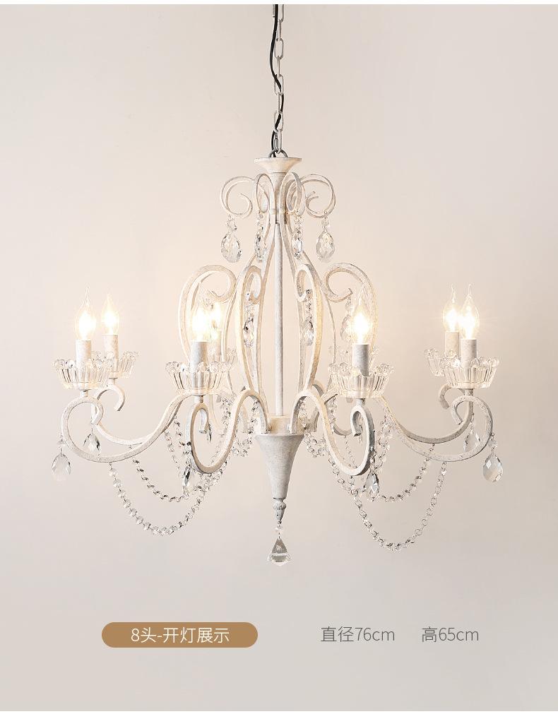 Compre Lustre branco retrô americano sala de estar lâmpada de cristal francesa quarto famoso moderno minimalista sala de jantar estudo lâmpadas criativas no atacado no Joom.pro