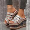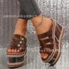 Chinelos de plataforma de alta qualidade femininos Leaf c132 primavera novo estilo étnico sandálias de cunha sandálias de bico aberto
