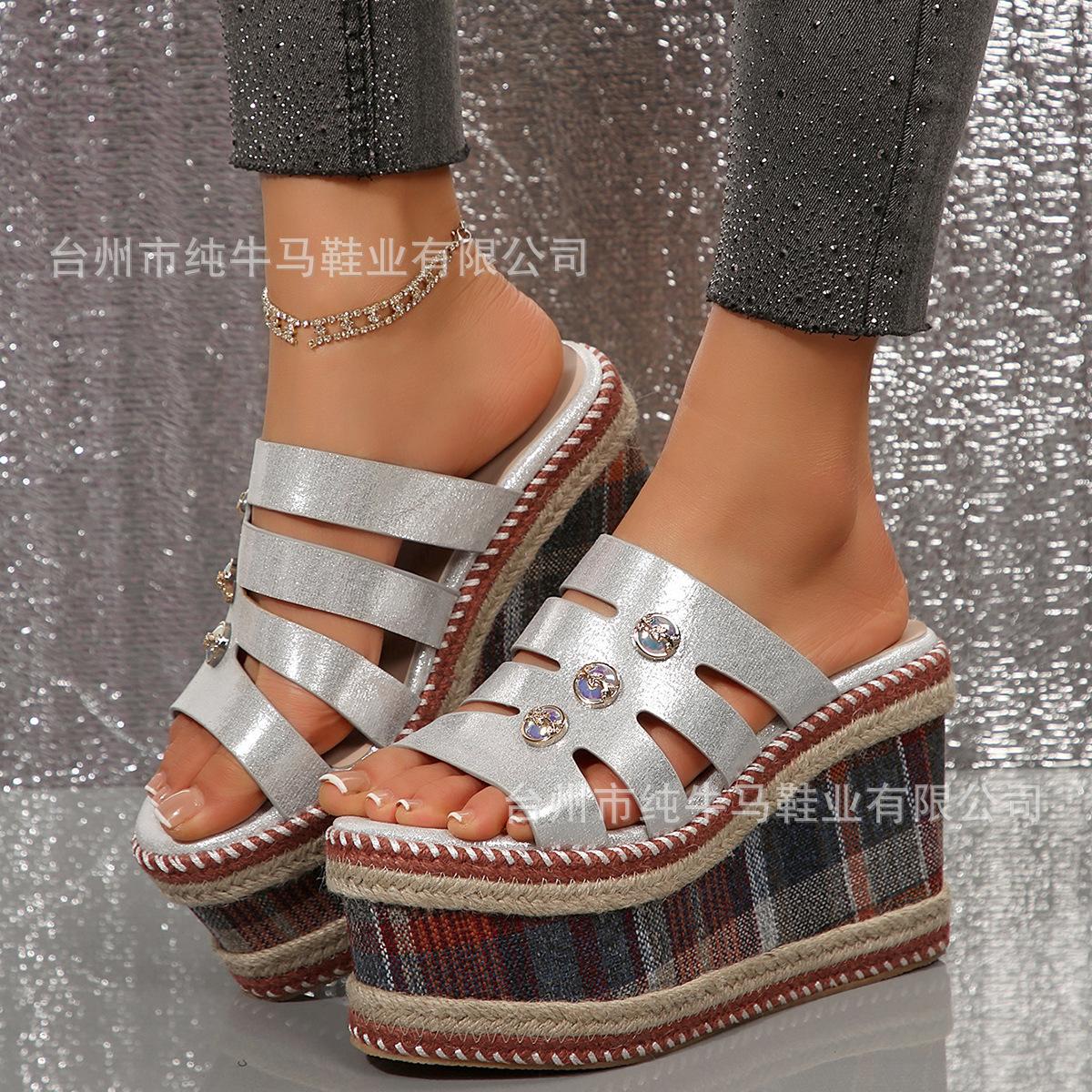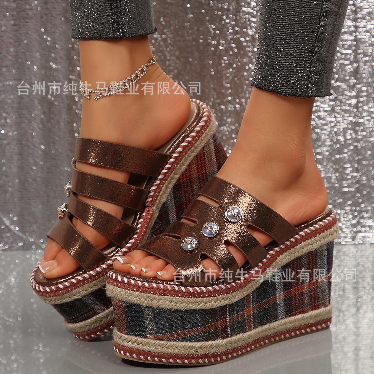 Compre Chinelos de plataforma de alta qualidade femininos Leaf c132 primavera novo estilo étnico sandálias de cunha sandálias de bico aberto no atacado no Joom.pro