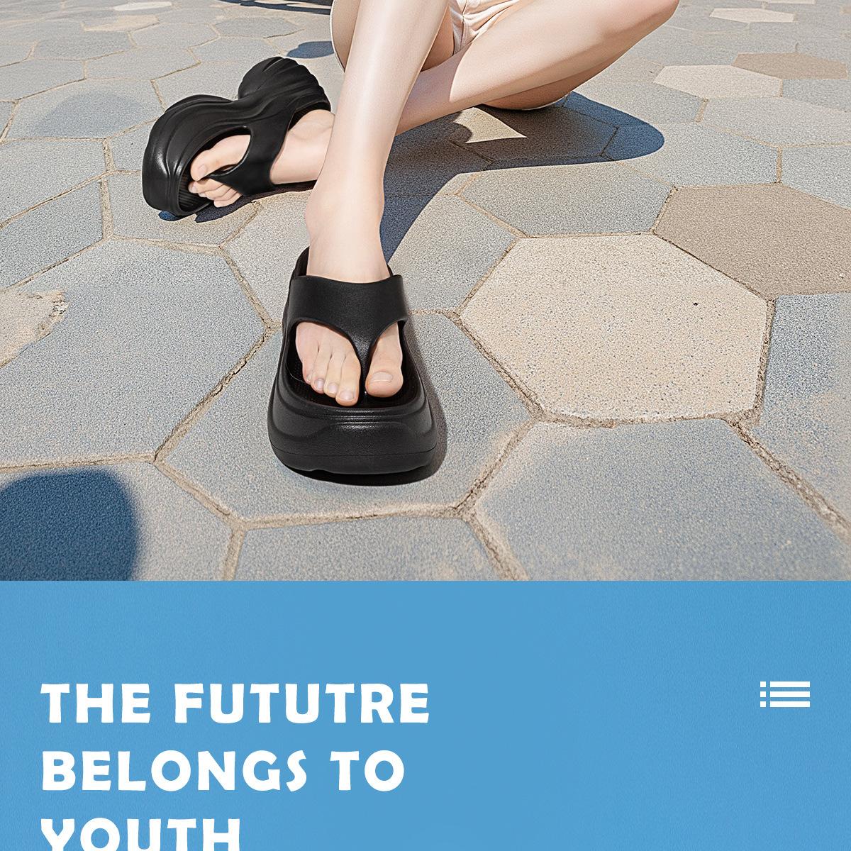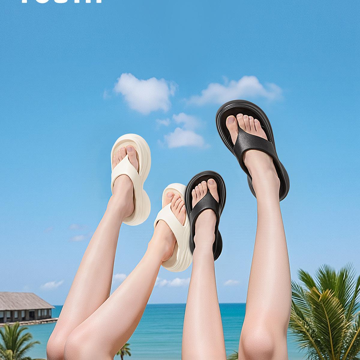 Chinelos de sola grossa com sensação de esterco femininos verão 2025 novos chinelos de praia antiderrapantes de cintura alta para mulheres