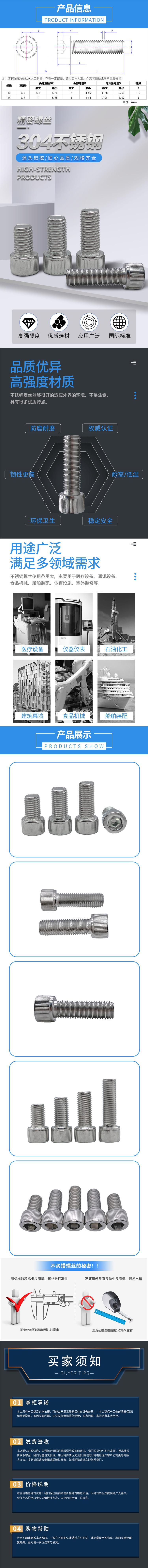 Parafusos de Aço Inoxidável com Soquete Sextavado M1.4-M10 Estendidos Din912 Cabeça Cilíndrica Recartilhada Cabeça Cônica Parafusos Extra Longos 304