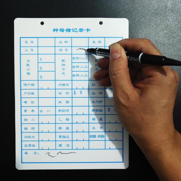 Vendas diretas da fábrica: cartão de registro de porca, cartão de quantidade de ração, cartão de gordura traseira e também pode ser personalizado de acordo com os requisitos e impresso com LOGOTIPO. Especificações: 15*20CM, 10 cartões por corO preço é por peça.