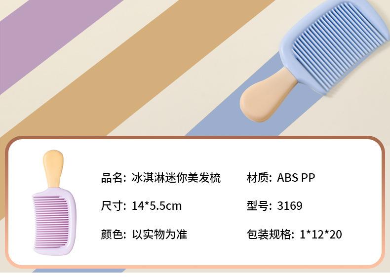 Mini Pente de Cabelo de Sorvete Pente de Cabelo Longo para Meninas Pente de Cabelo Liso Dormitório de Estudantes Pente Grande Shun Hair Pente de Plástico Portátil