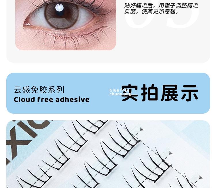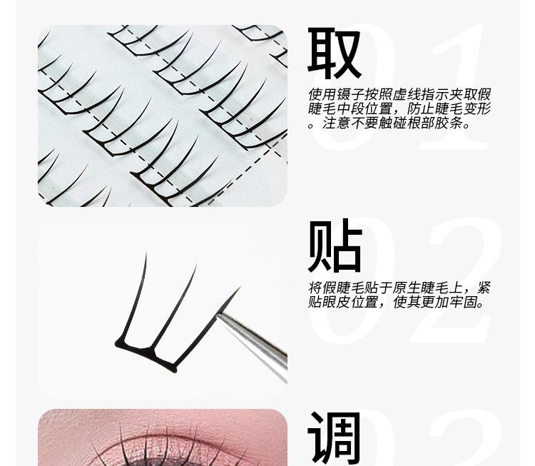 Cílios postiços curvos do grupo feminino 2.0, naturalmente curvados, macios e leves, em um único cacho, segmentados, em fatias finas e pequenas