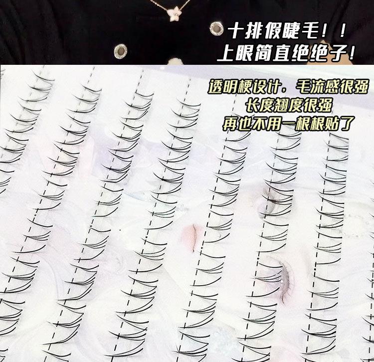 Sino mei 10 fileiras de cílios postiços transparentes preguiçosos D35 de grande capacidade, cílios naturais segmentados por atacado