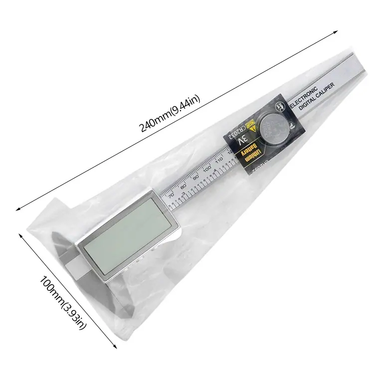 Silver plastic large screen vernier caliper 0-150mm (with 1 battery)