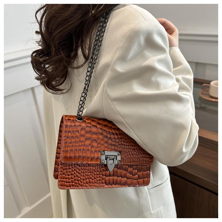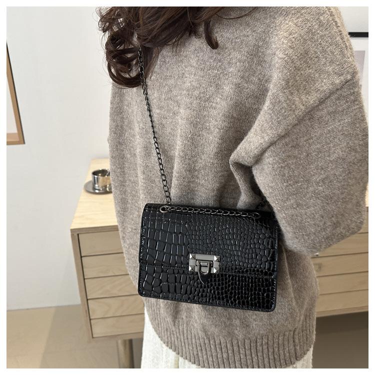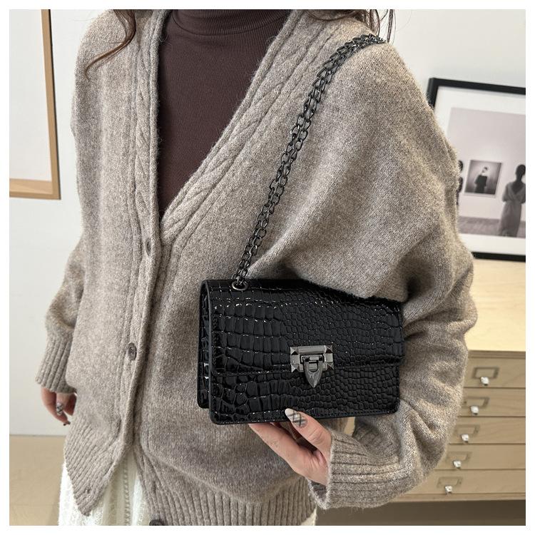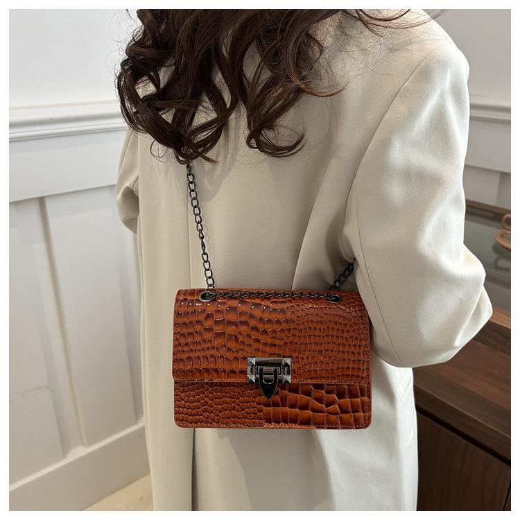 Bolsa de corrente retrô estilo Hong Kong feminina 2025 nova moda casual bolsa de ombro transversal bolsa casual para deslocamento pequena bolsa quadrada