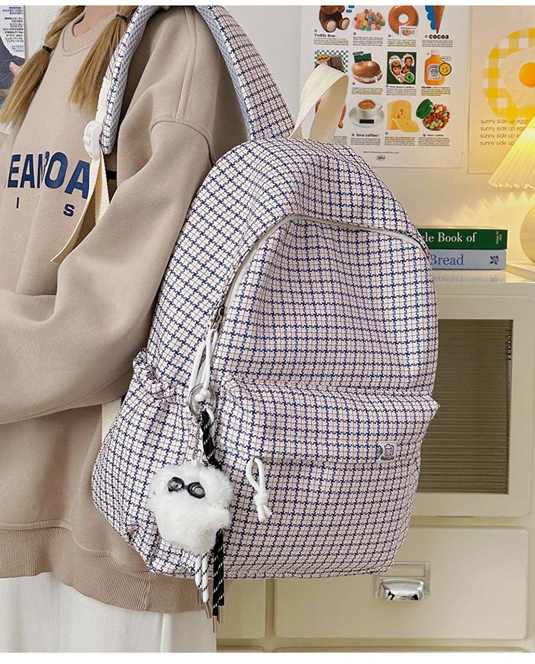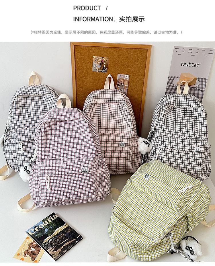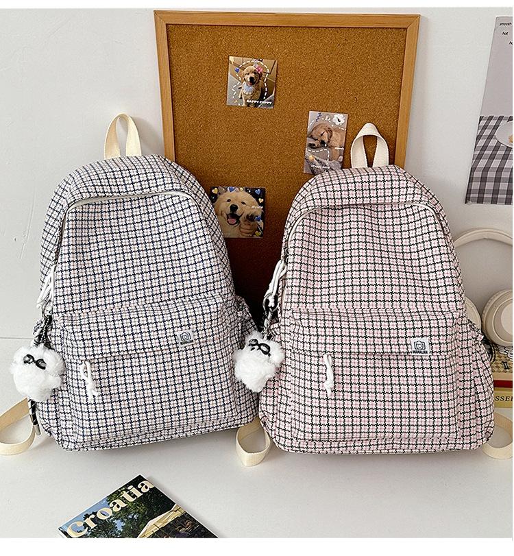 Mochila Escolar para Estudante Universitário Feminina Estudante do Ensino Fundamental Estilo Coreano Casual Xadrez Mochila Versátil Grande Capacidade Estudante do Ensino Médio Mochila para Computador