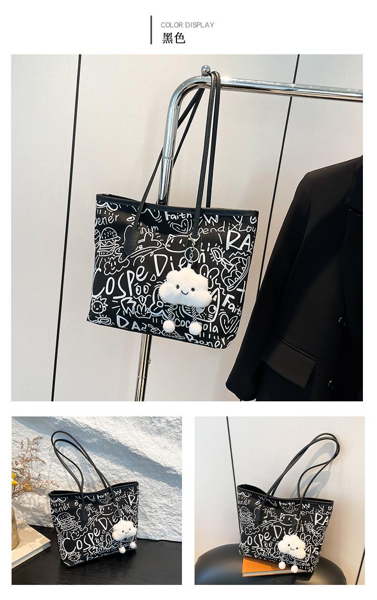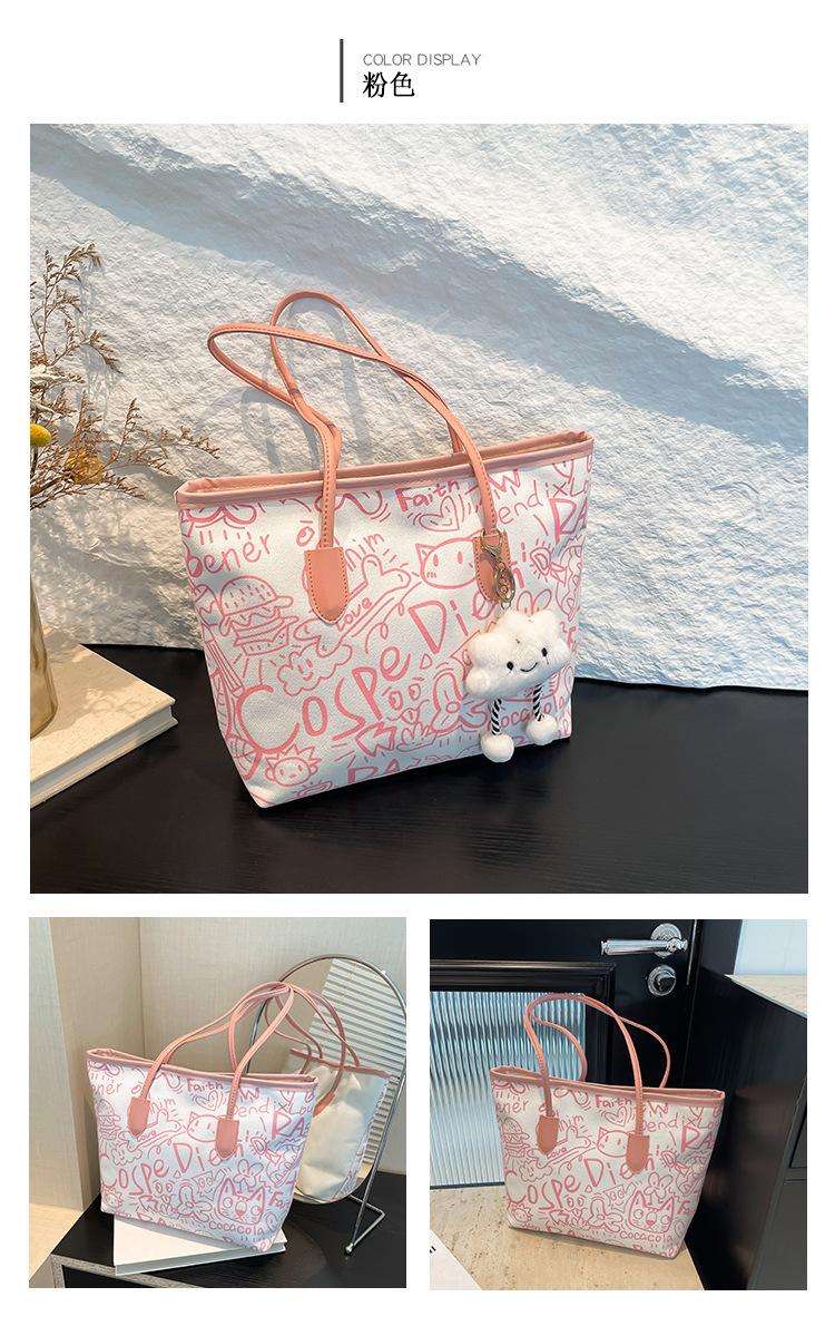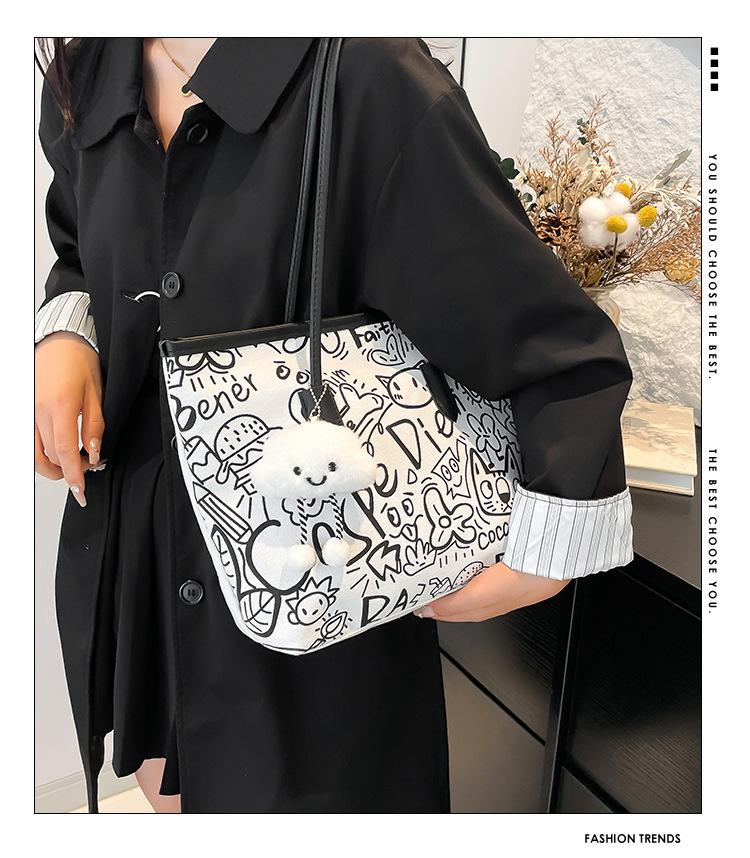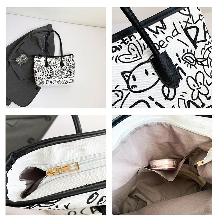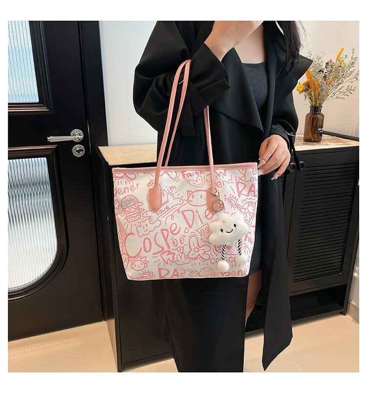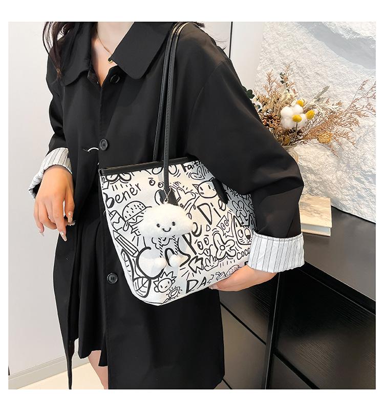 Compre Bolsa de lona Graffiti feminina 2025 nova bolsa de ombro casual all-match grande capacidade estudante classe viajante bolsa tote no atacado no Joom.pro