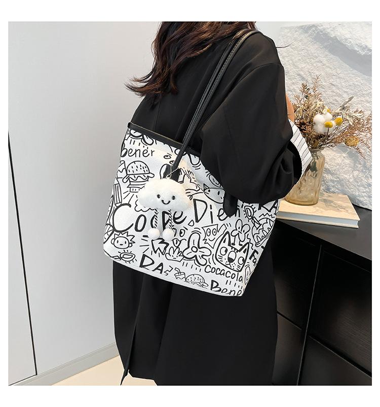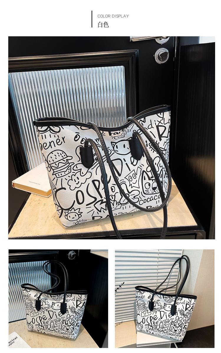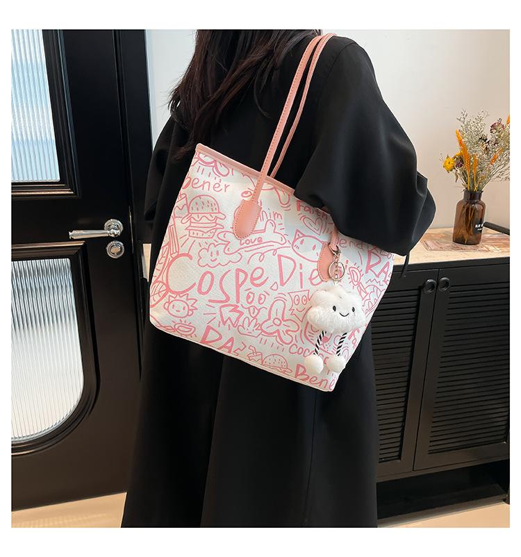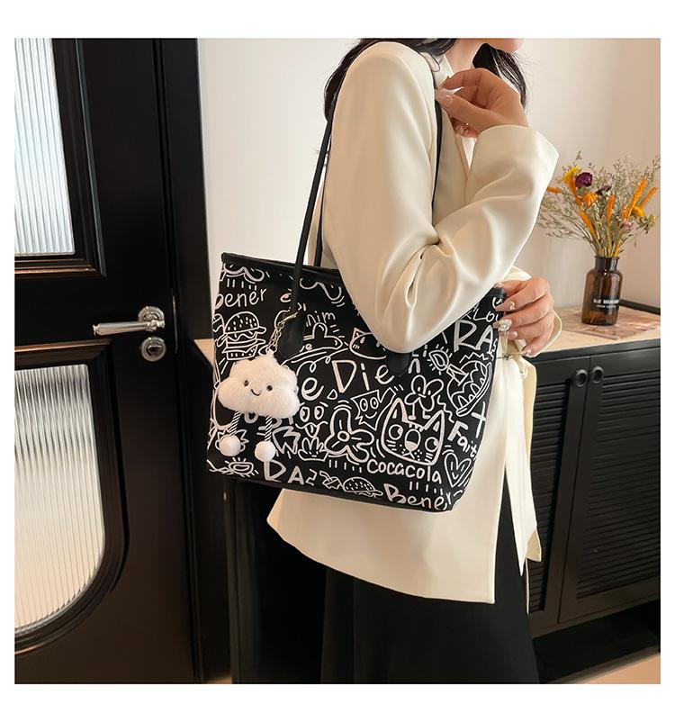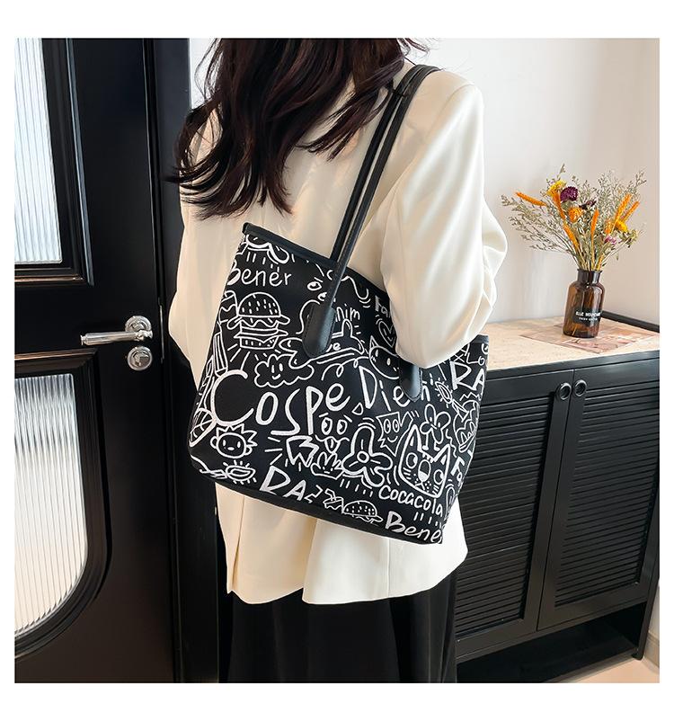 Bolsa de lona Graffiti feminina 2025 nova bolsa de ombro casual all-match grande capacidade estudante classe viajante bolsa tote