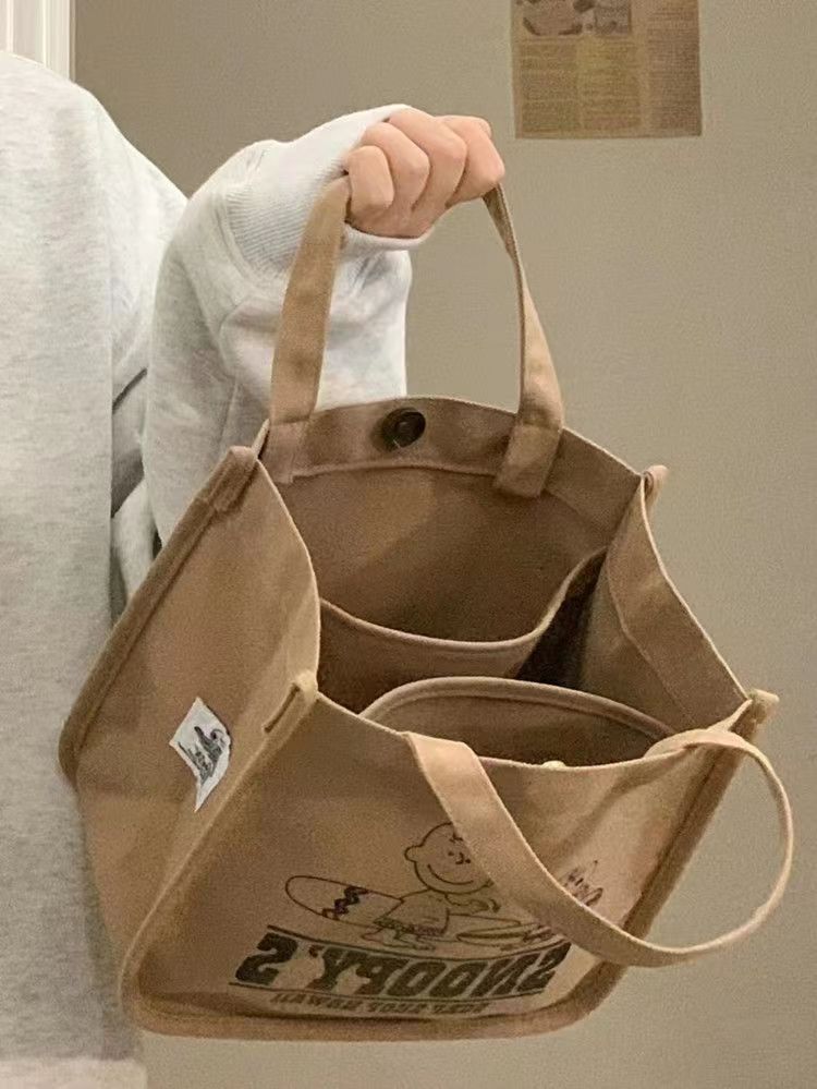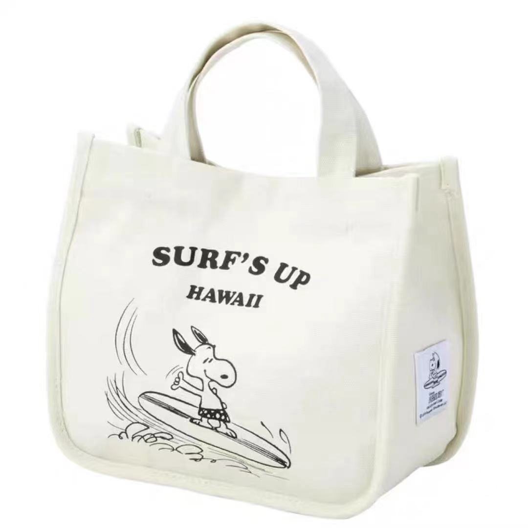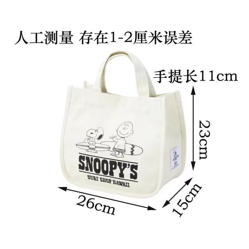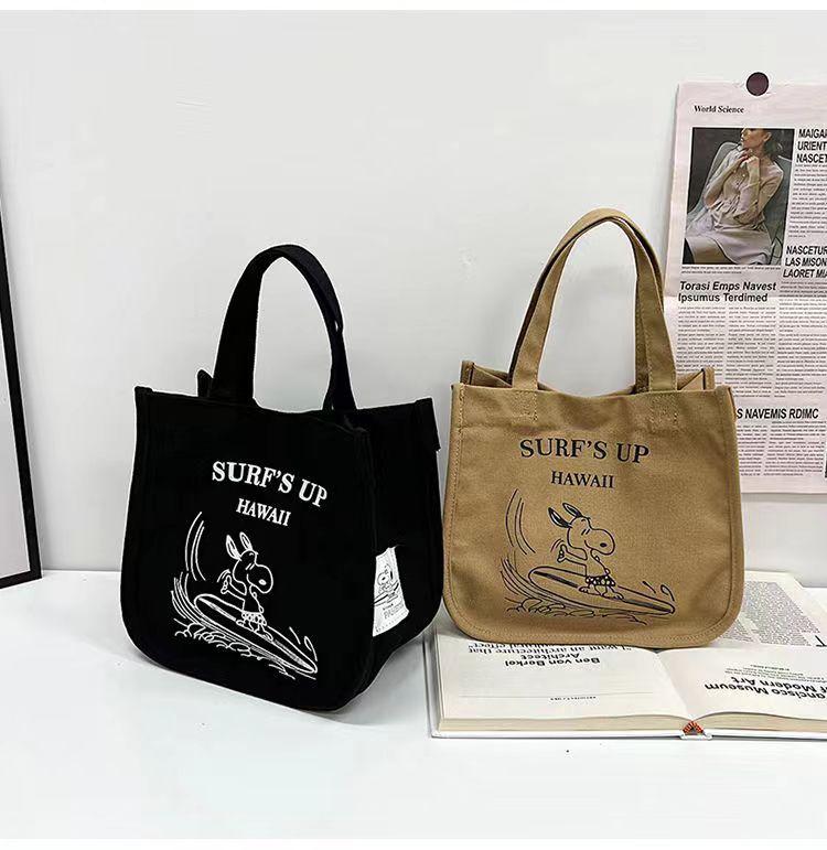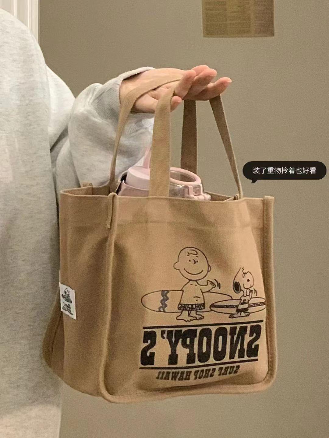 Bolsa de lona portátil de grande capacidade, bolsa de armazenamento, bolsa de balde, bolsa feminina, nova moda, bolsa de lona do Snoopy