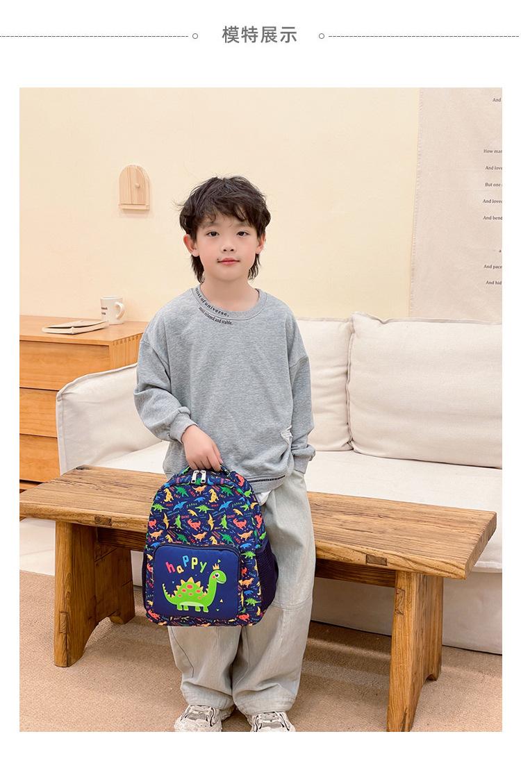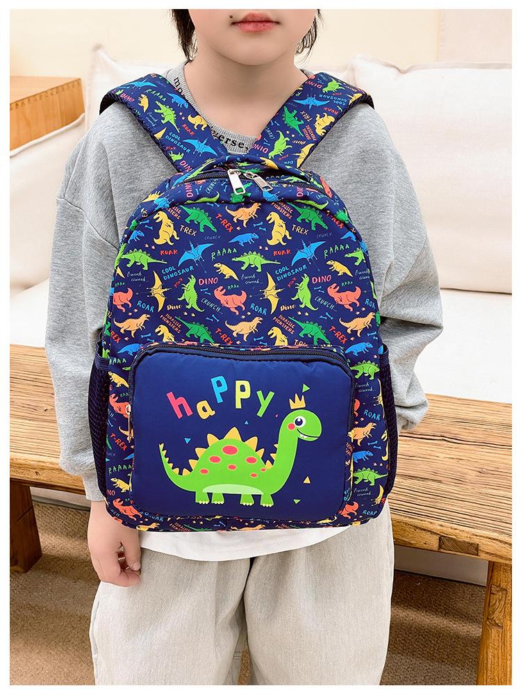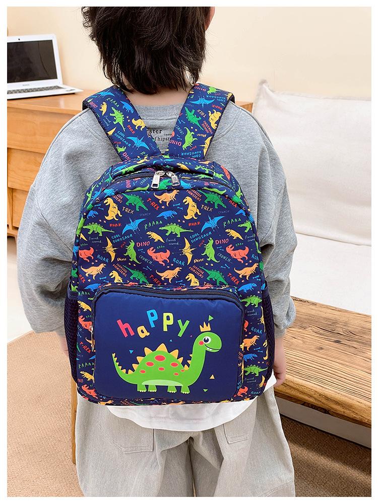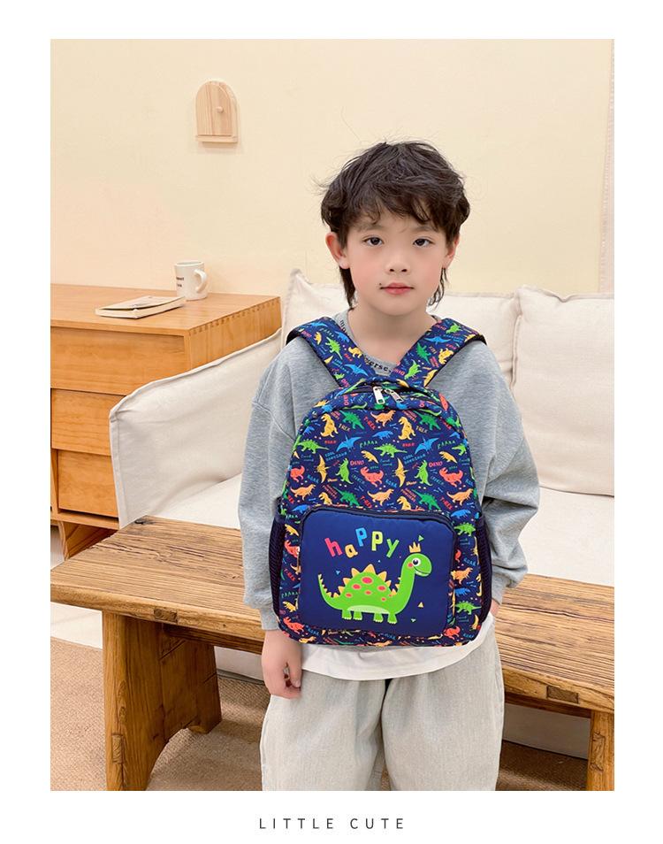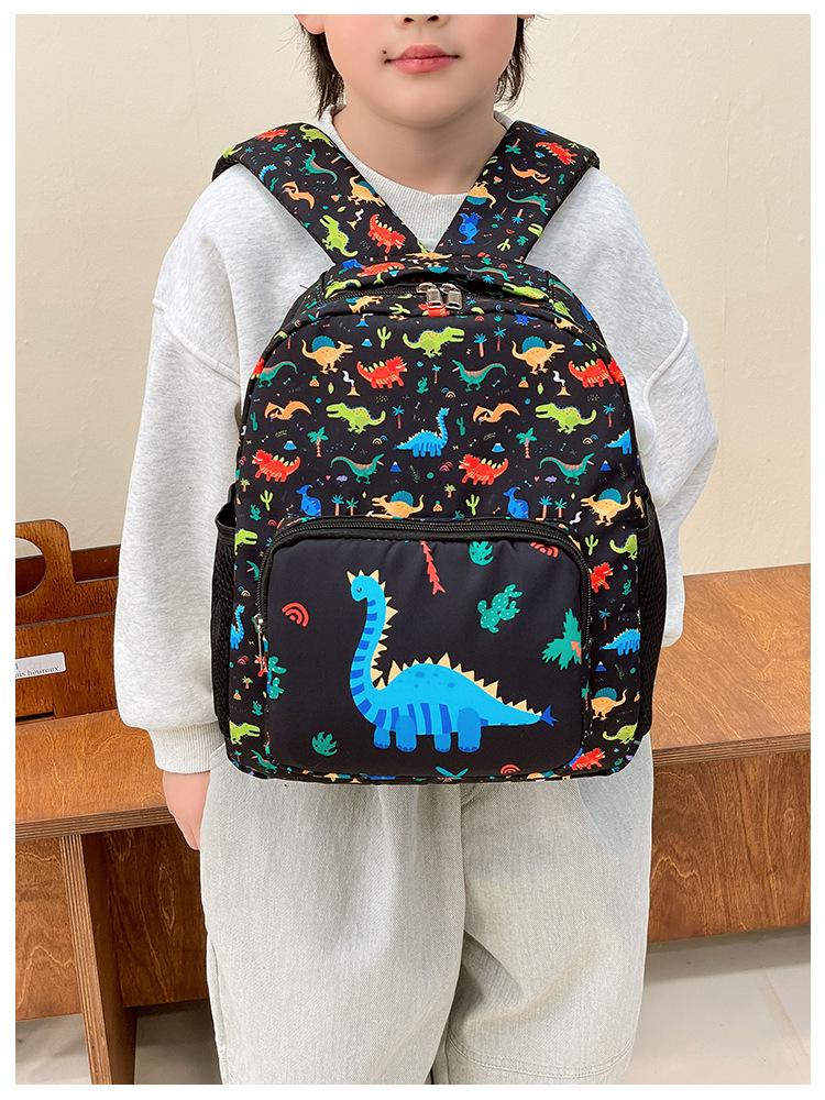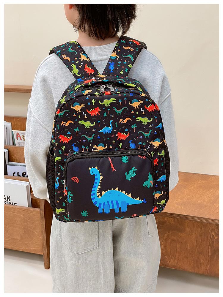 2025 Primavera Nova Bolsa Infantil Desenho Animado Dinossauro Padrão Nylon Mochila Jardim de Infância Bebê Classe Média e Pequena Mochila Escolar