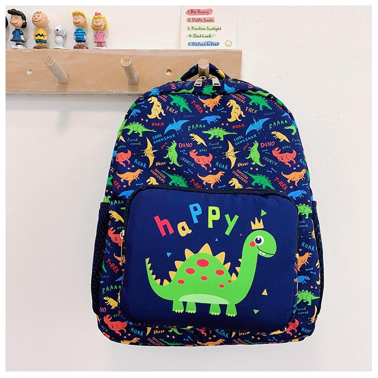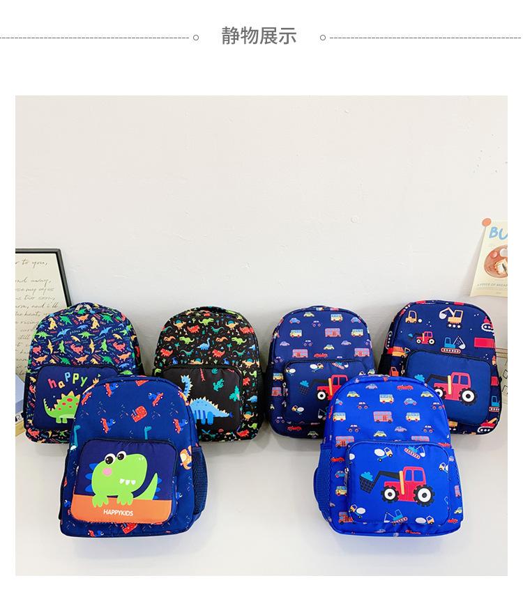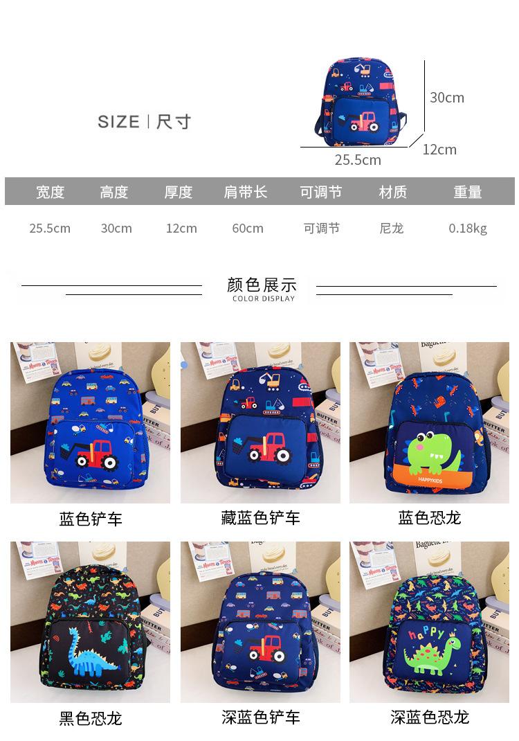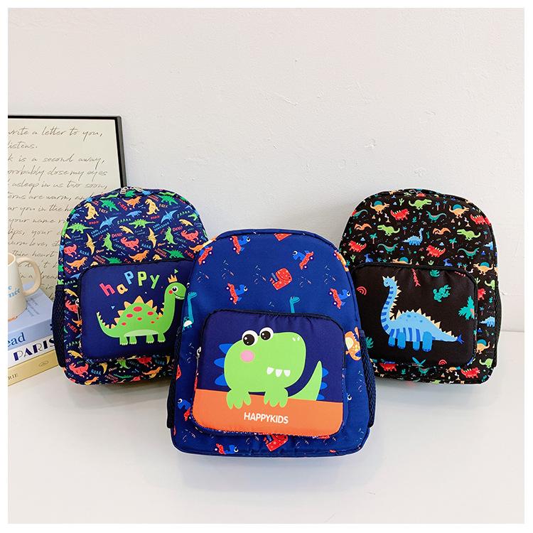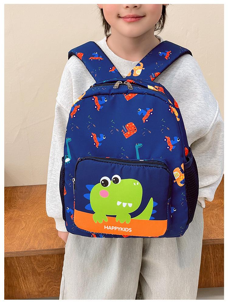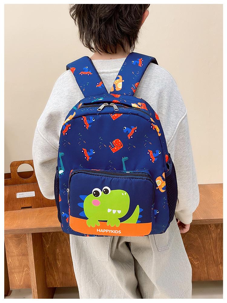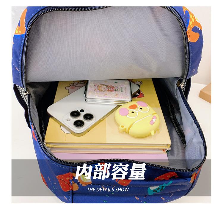 2025 Primavera Nova Bolsa Infantil Desenho Animado Dinossauro Padrão Nylon Mochila Jardim de Infância Bebê Classe Média e Pequena Mochila Escolar