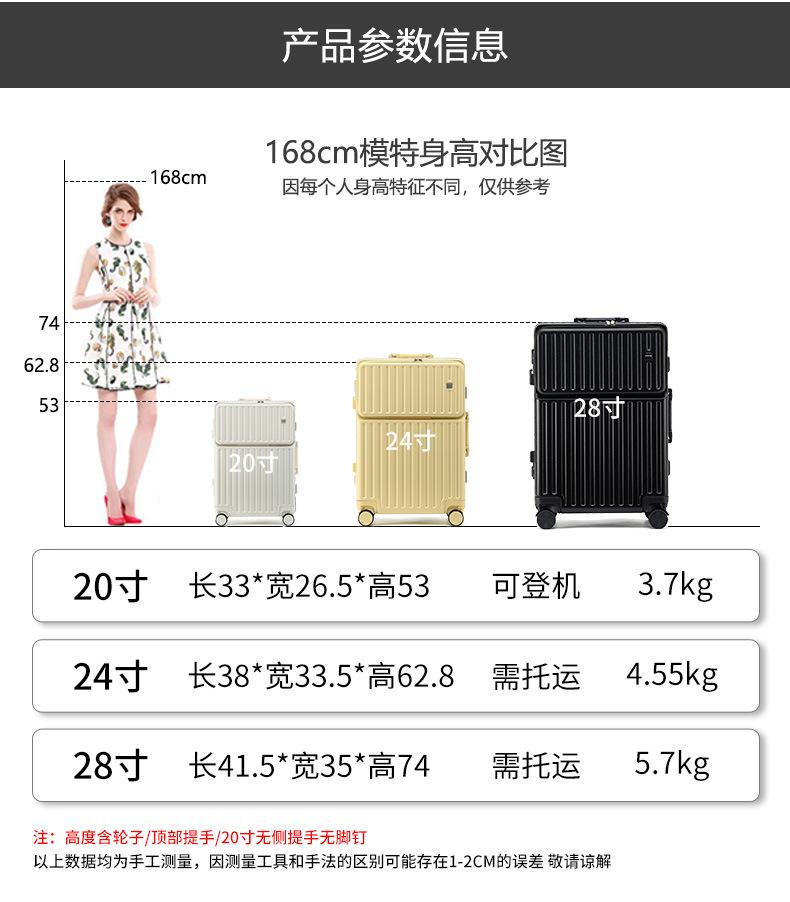 Mala de Alumínio com Abertura Frontal para Mulheres Pequena Curta Distância 20 polegadas Mala de Bordo com Senha Mala Masculina 24 Mala de Rodinhas 28