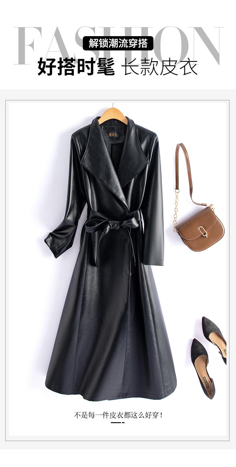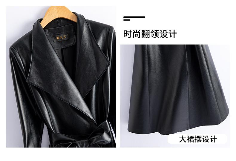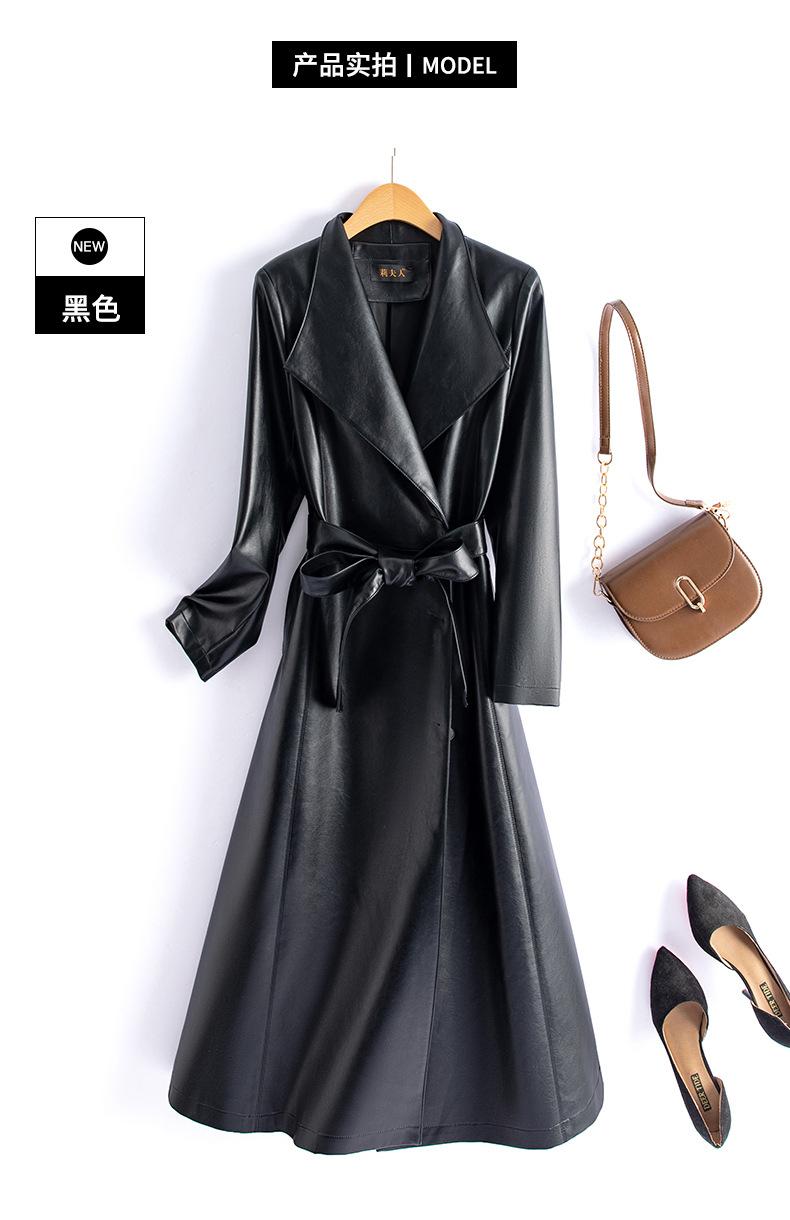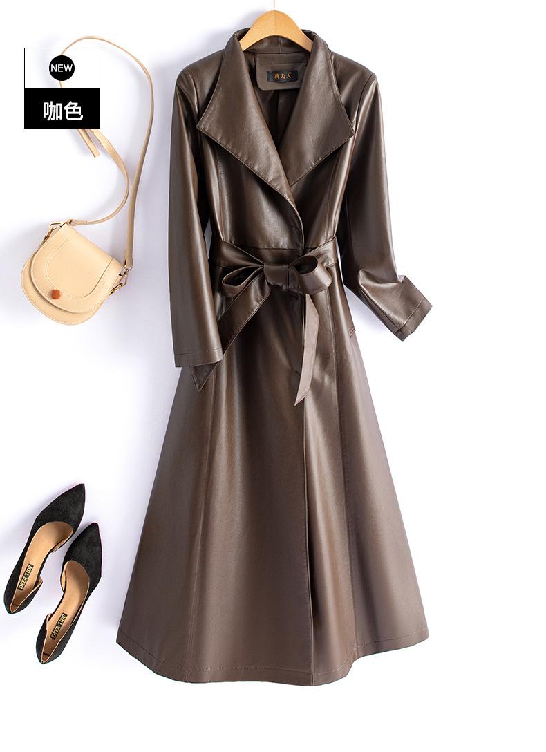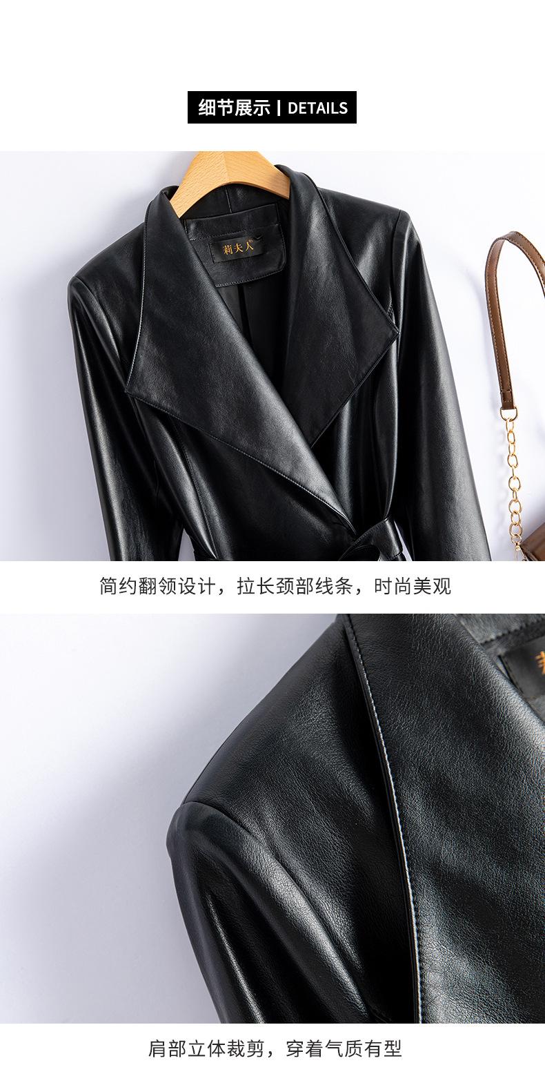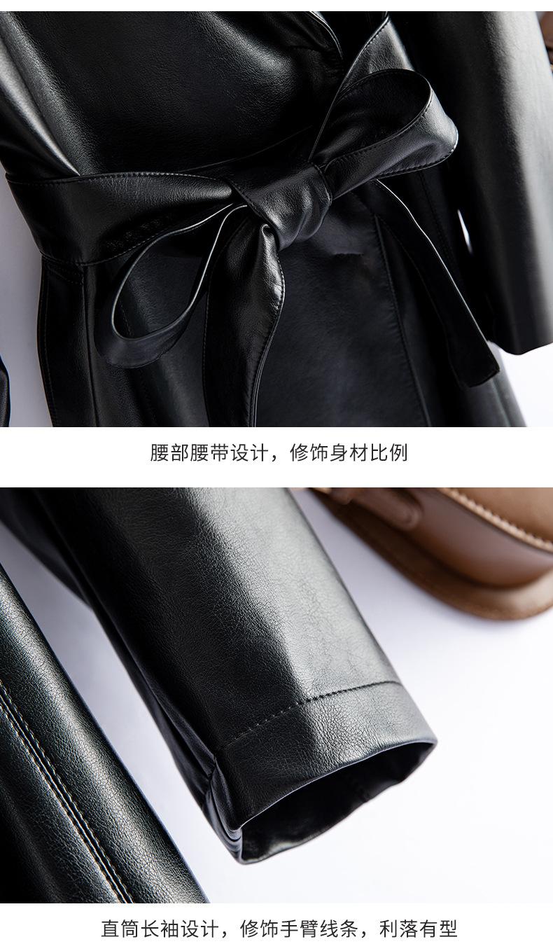 Jaqueta de Couro Haining Feminina Comprimento Médio Acima do Joelho Corta-vento de Couro PU 2025 Outono e Inverno Novo Casaco de Pele de Ovelha Tamanho Grande
