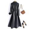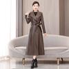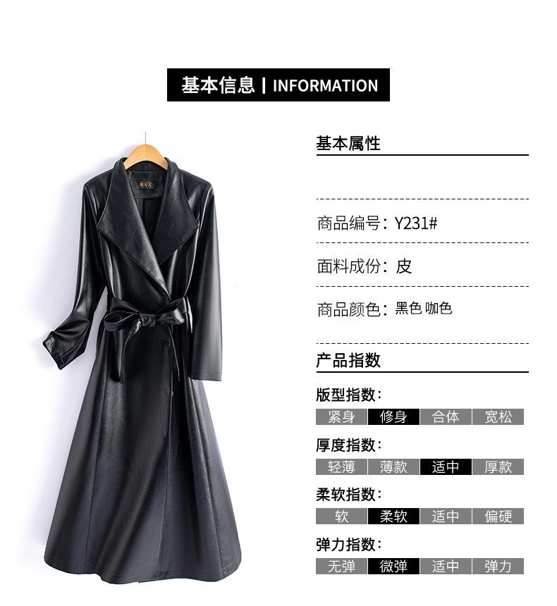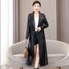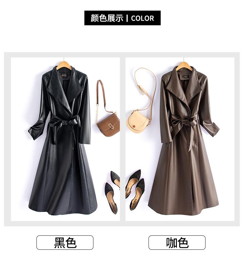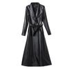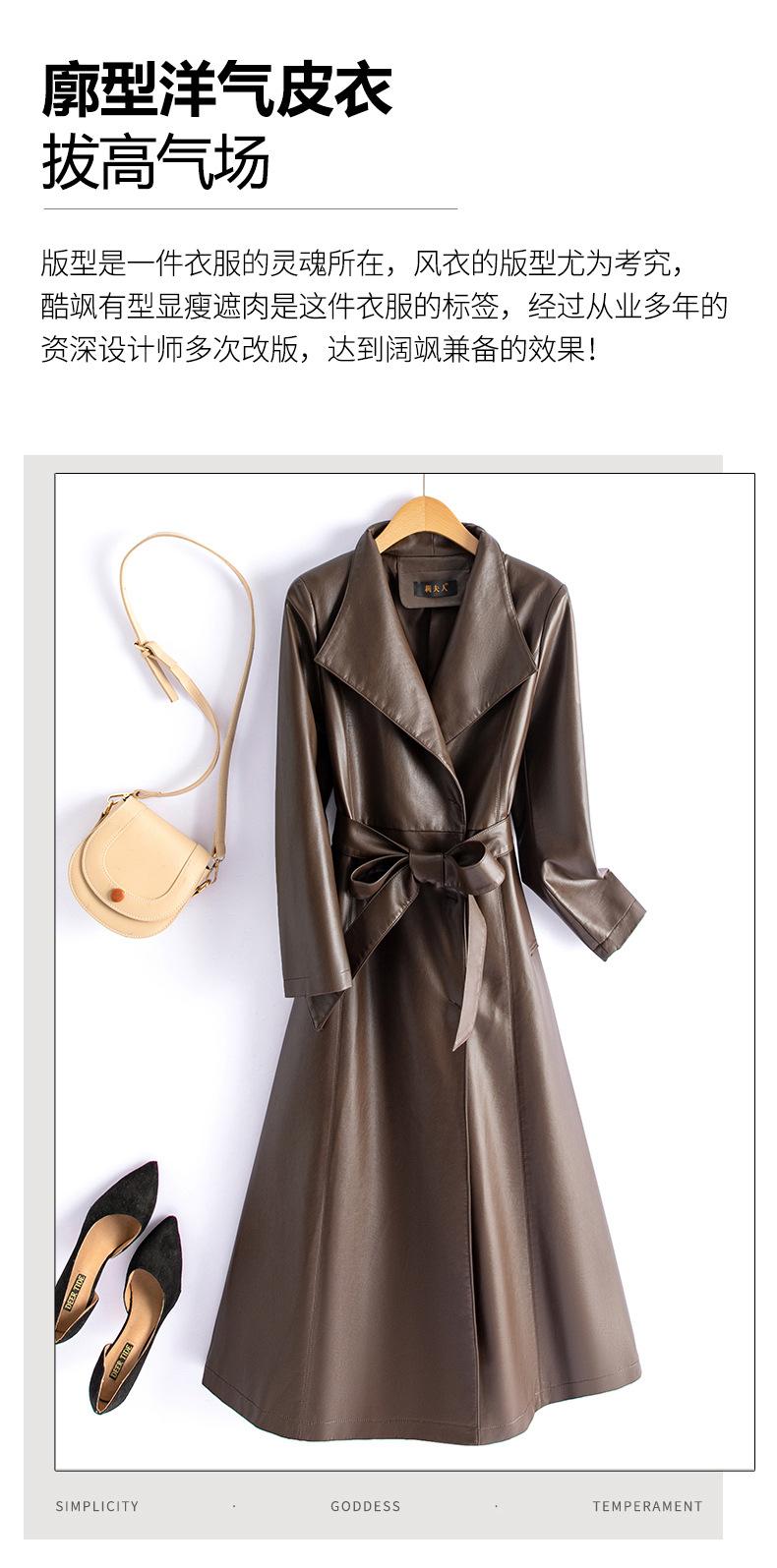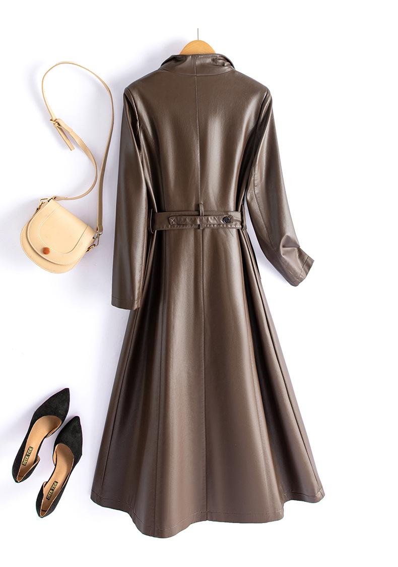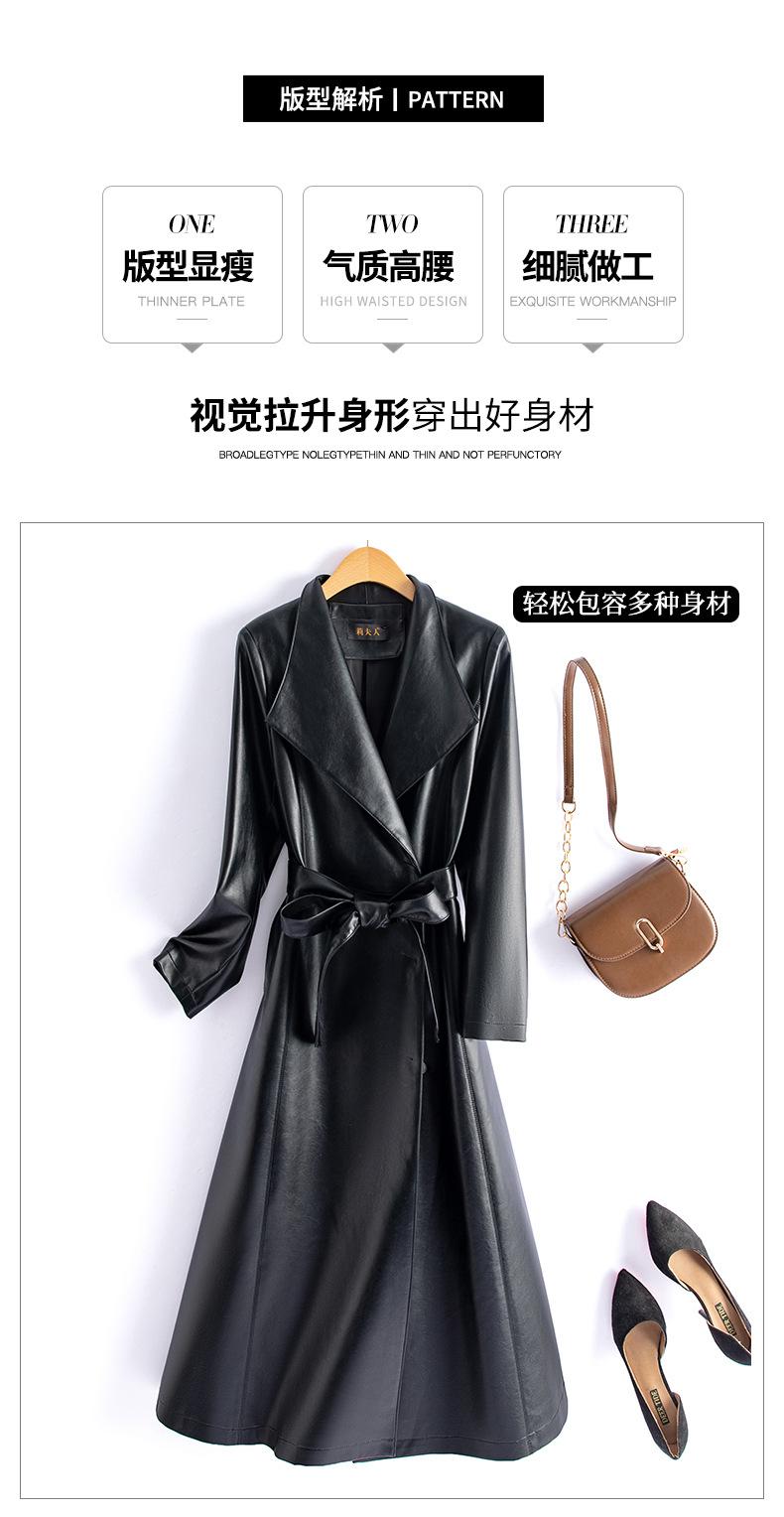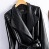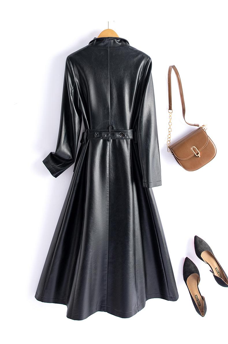 Jaqueta de Couro Haining Feminina Comprimento Médio Acima do Joelho Corta-vento de Couro PU 2025 Outono e Inverno Novo Casaco de Pele de Ovelha Tamanho Grande