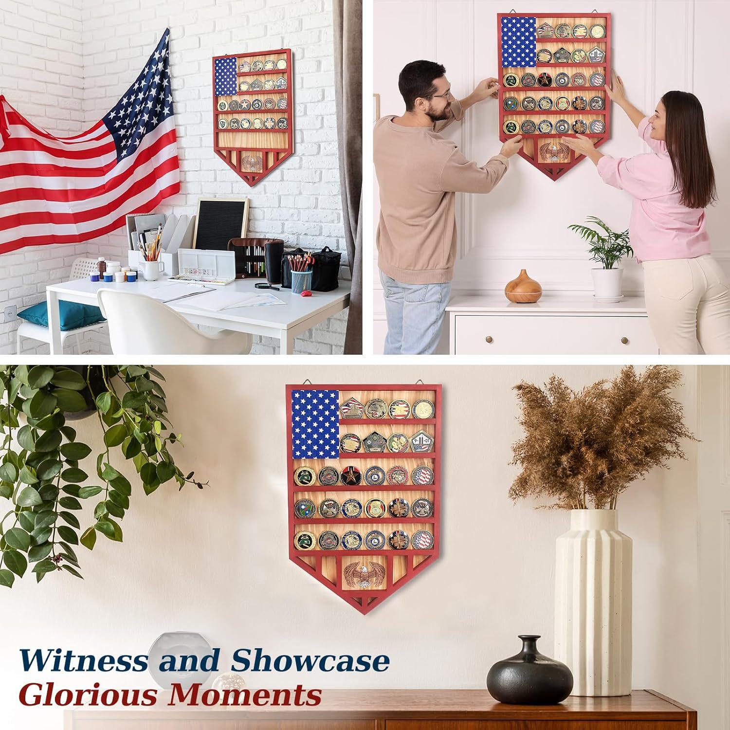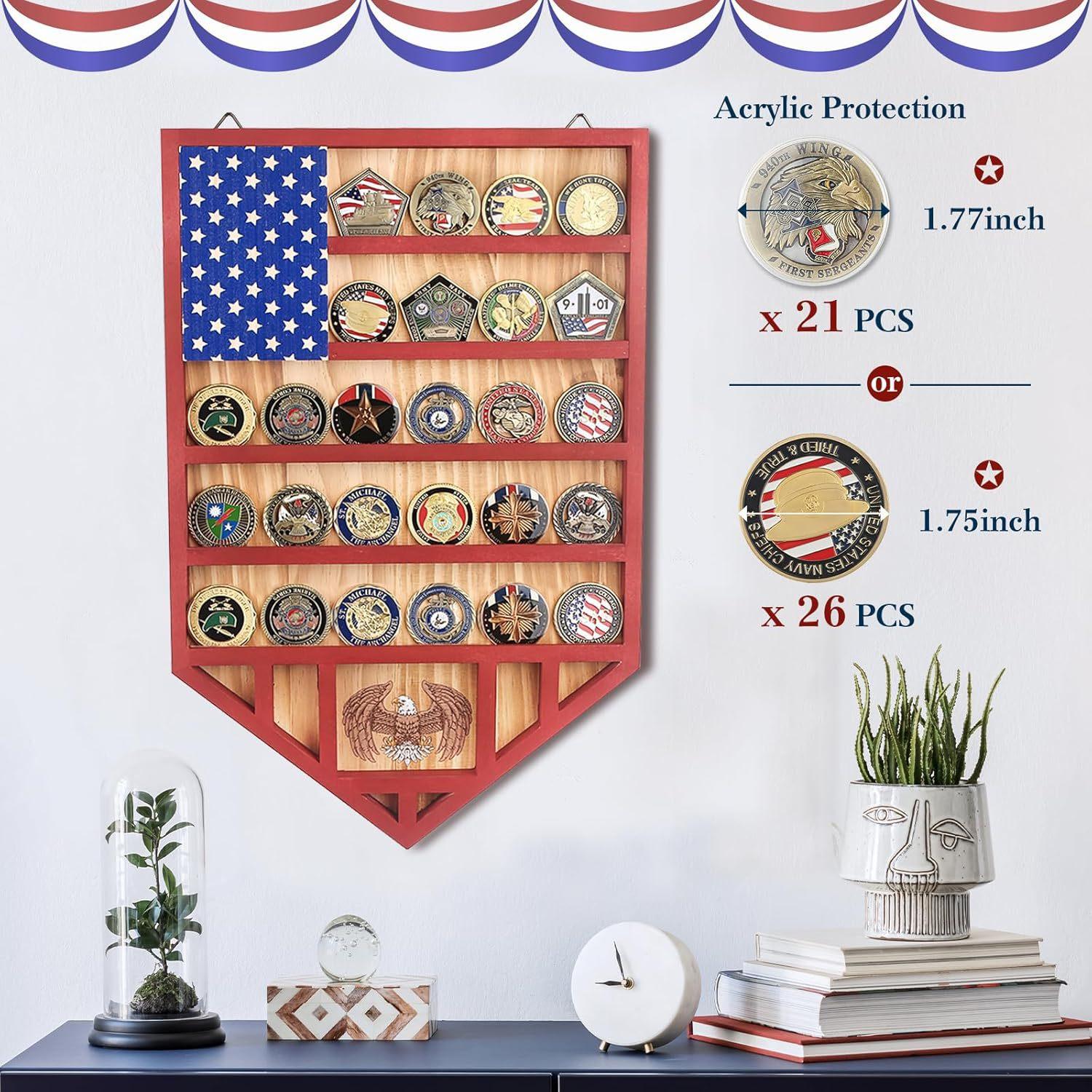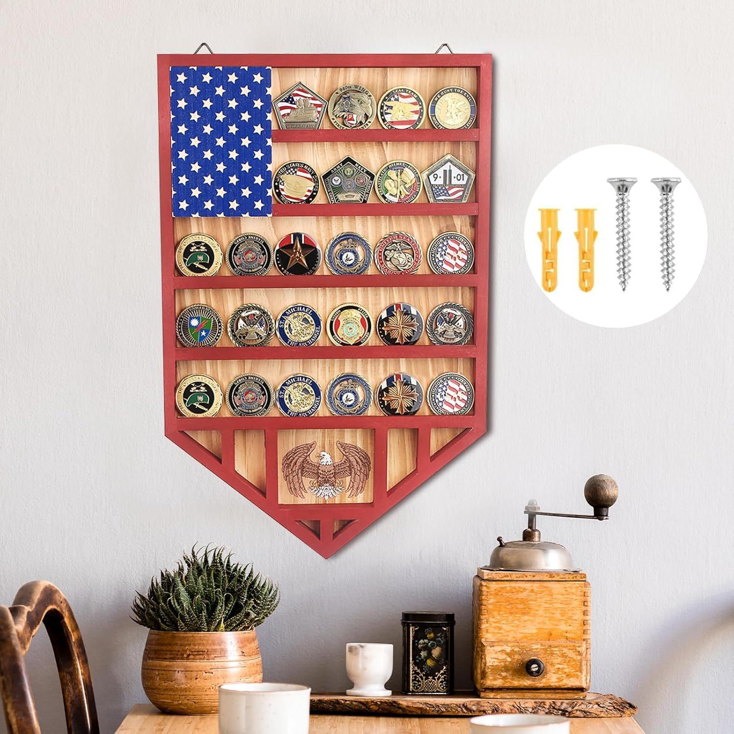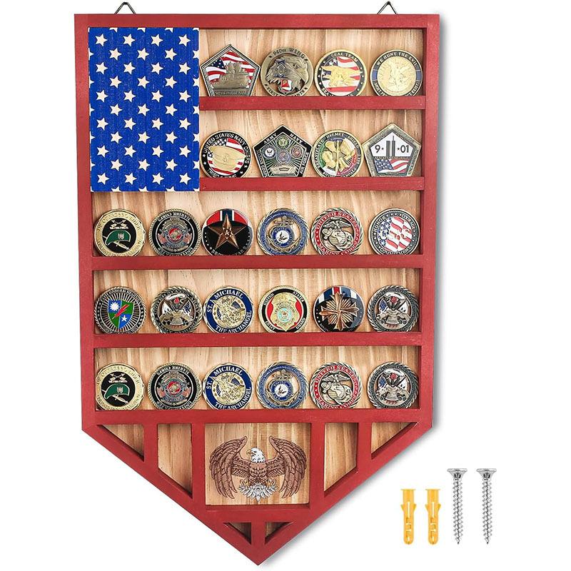 Expositor de moedas comemorativas, expositor de medalhas de pêndulo de mesa, expositor de moedas de madeira simples, expositor de moedas multicamadas