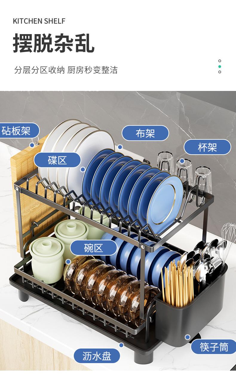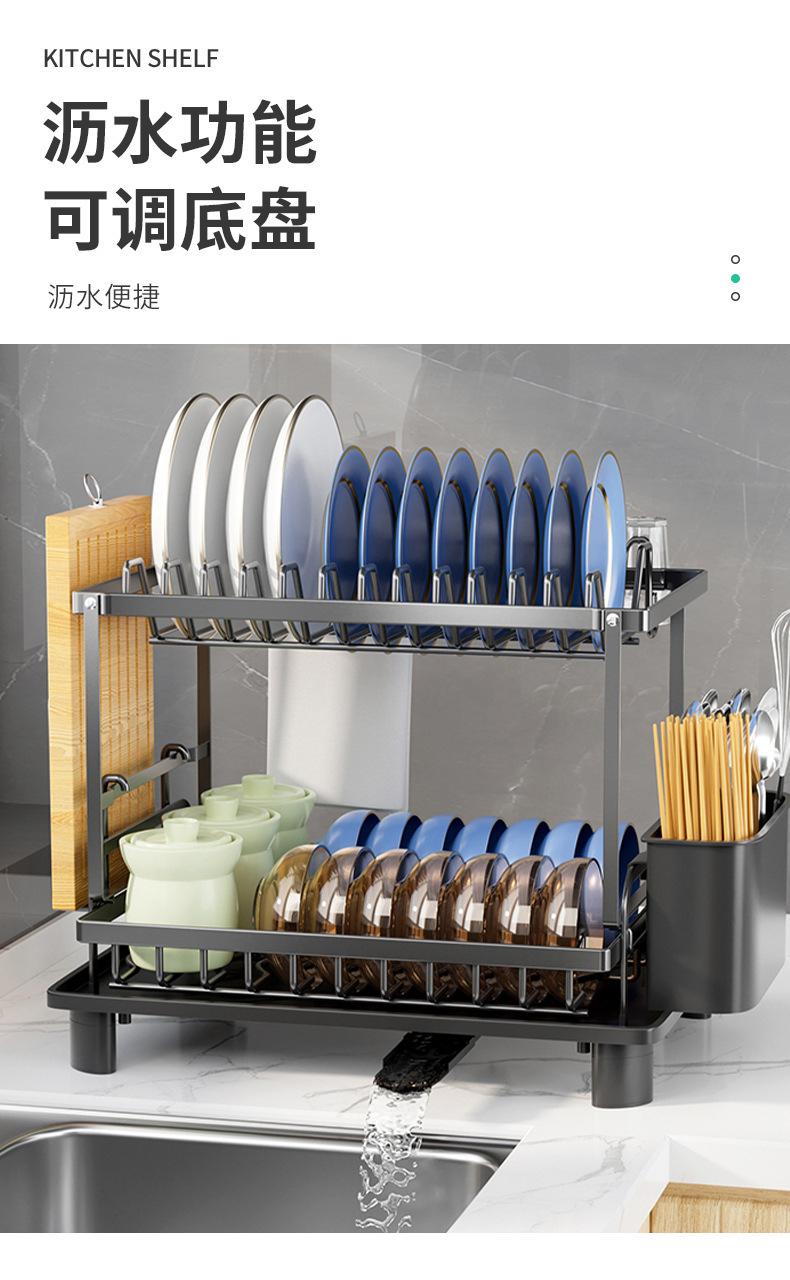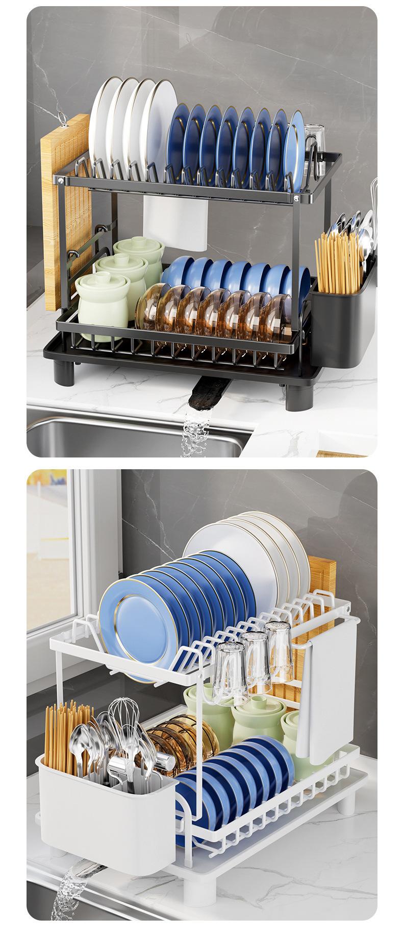 Escorredor de pratos de cozinha de camada dupla transfronteiriça, escorredor de bancada, escorredor de pratos multifuncional integrado, removível e de armazenamento
