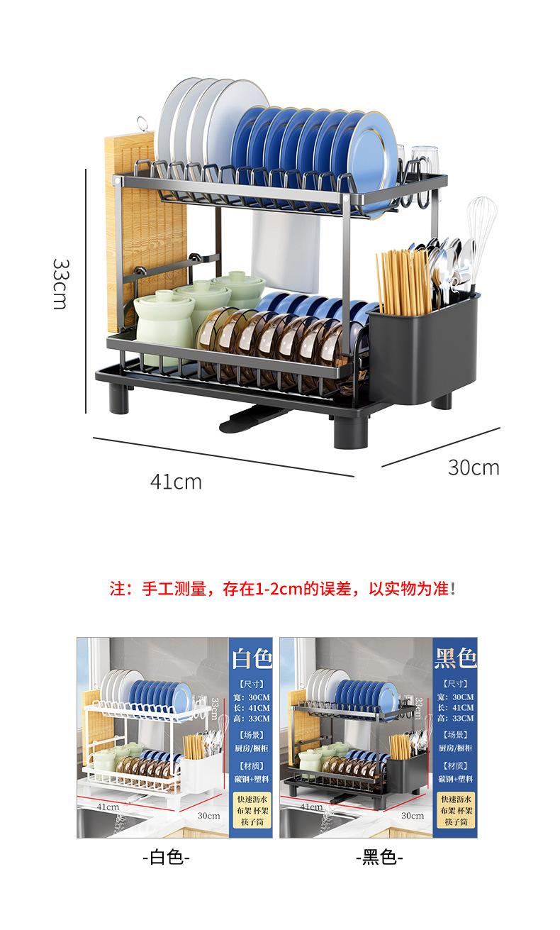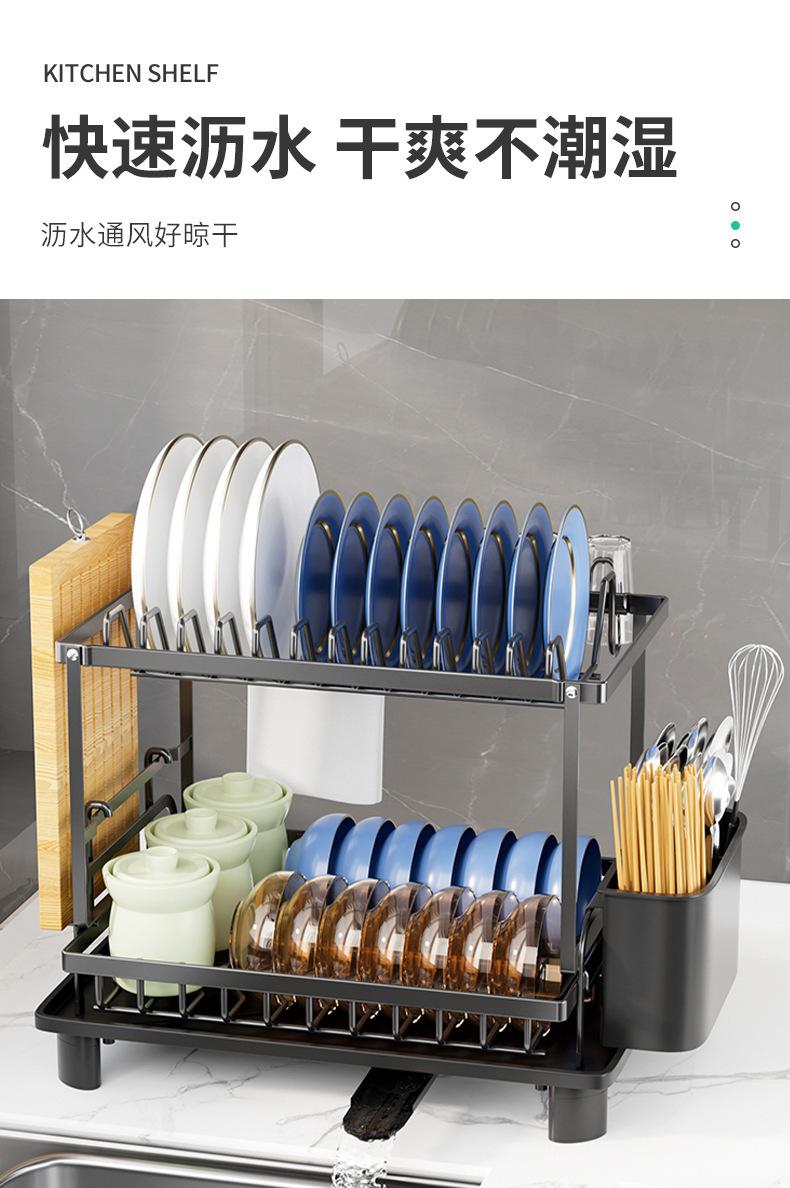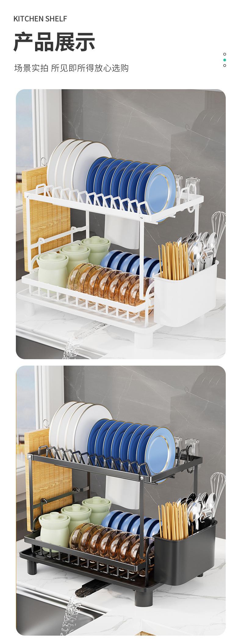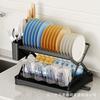 Escorredor de pratos de cozinha de camada dupla transfronteiriça, escorredor de bancada, escorredor de pratos multifuncional integrado, removível e de armazenamento