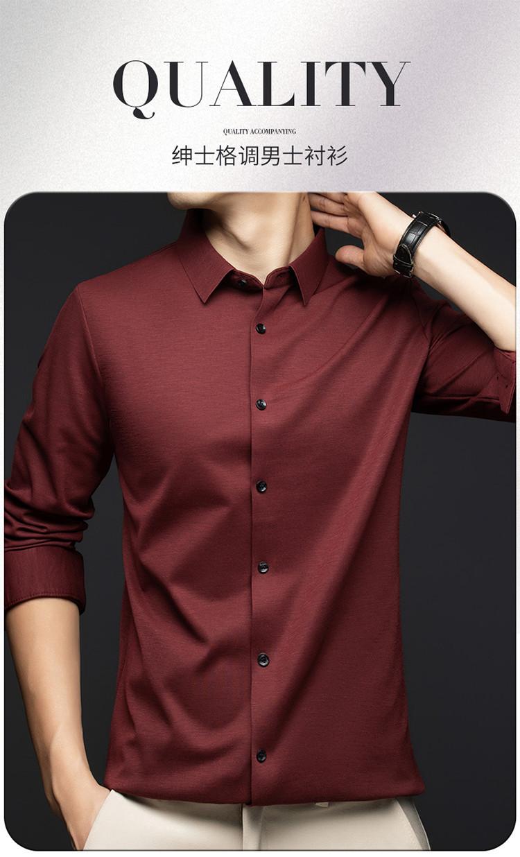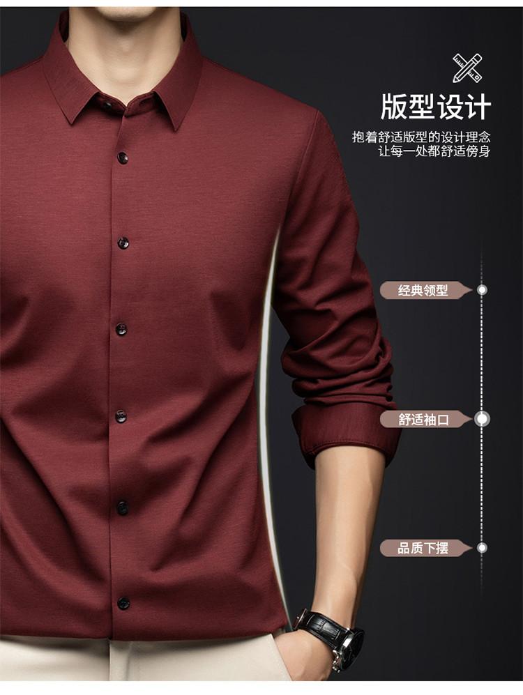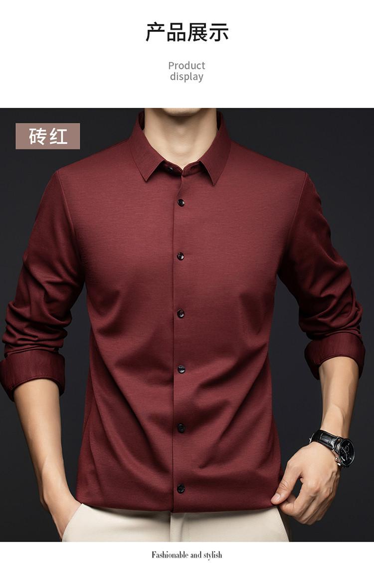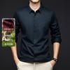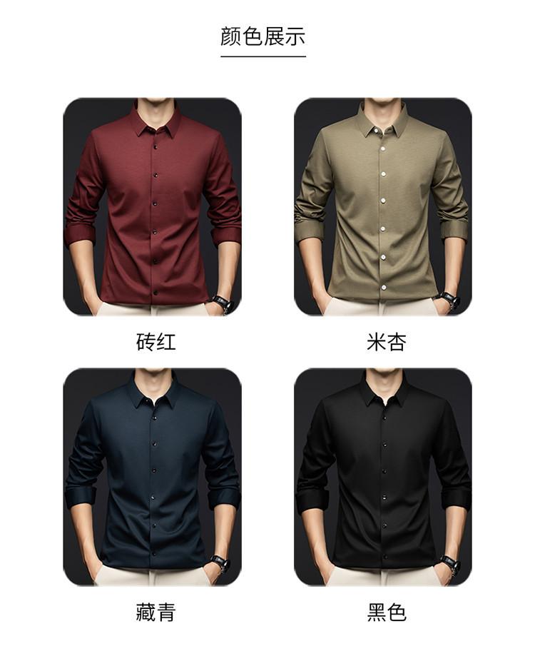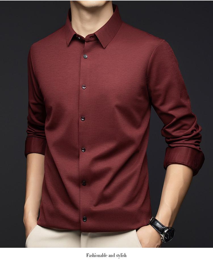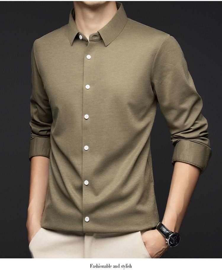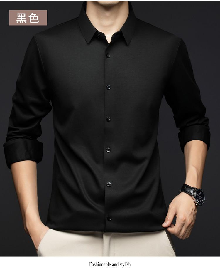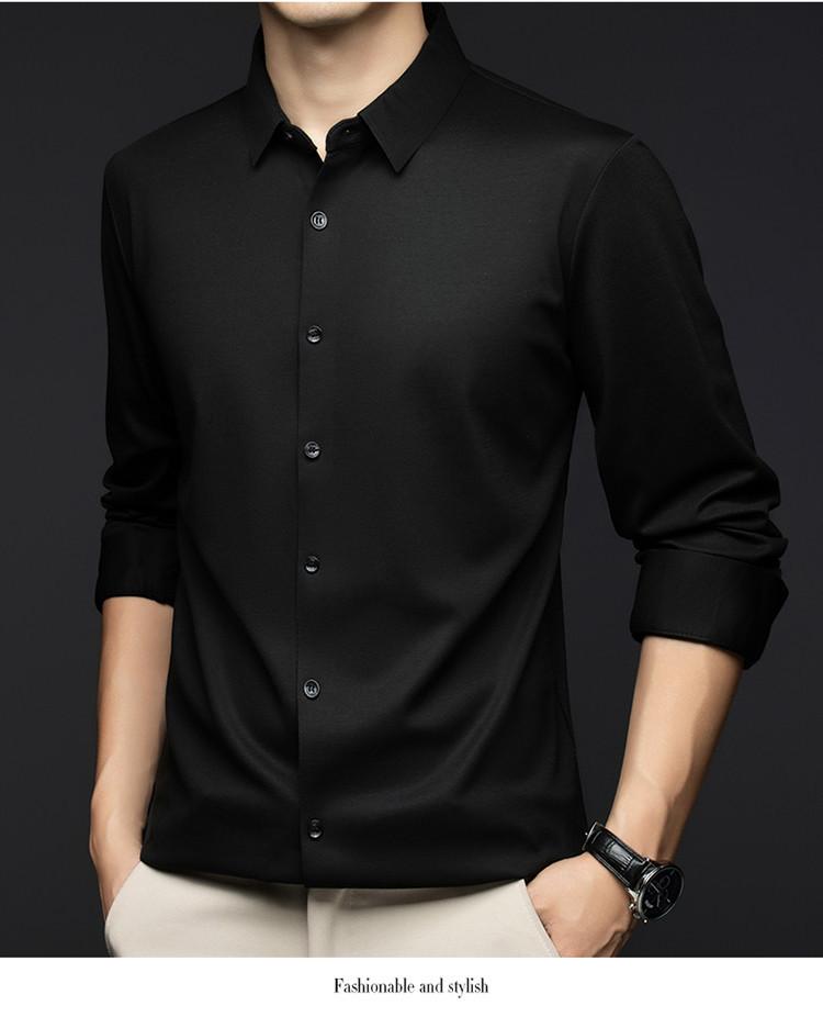 Camisa de manga comprida elástica de seda gelada sem costura de alta qualidade, nova camisa masculina de negócios de primavera e outono, de alta qualidade, sem passar