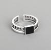 Anel Quadrado de Design Geométrico Japonês e Coreano com Corrente Dupla e Esmaltação a Óleo, Anel Aberto Moderno Personalizado Retrô para Dedo Indicador
