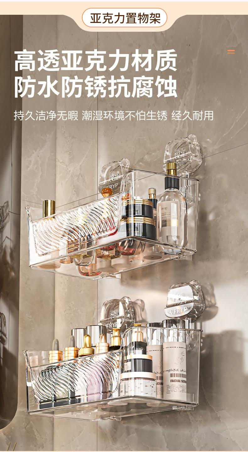 Compre Prateleira de Armazenamento com Ventosa Prateleira de Banheiro Cesto Pendurado para Lavatório Sem Furos Montado na Parede Organizador de Prateleira para Armazenamento de Cosméticos no atacado no Joom.pro