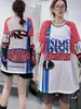Estilo americano casual gola redonda carta elegante estampado contraste cor moletom outono solto feminino plus size top