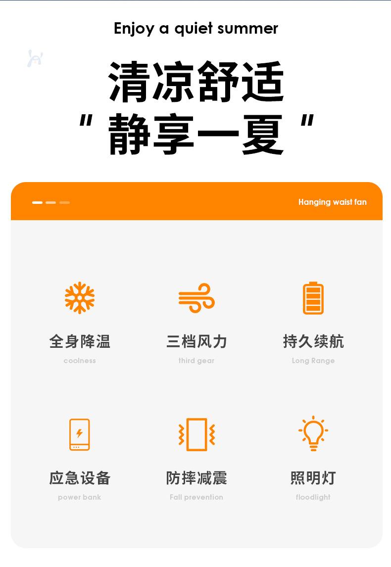 F49 waist-mounted fan-orange [waist-mounted + hanging neck + charging + lighting], F49 waist-mounted fan-green...